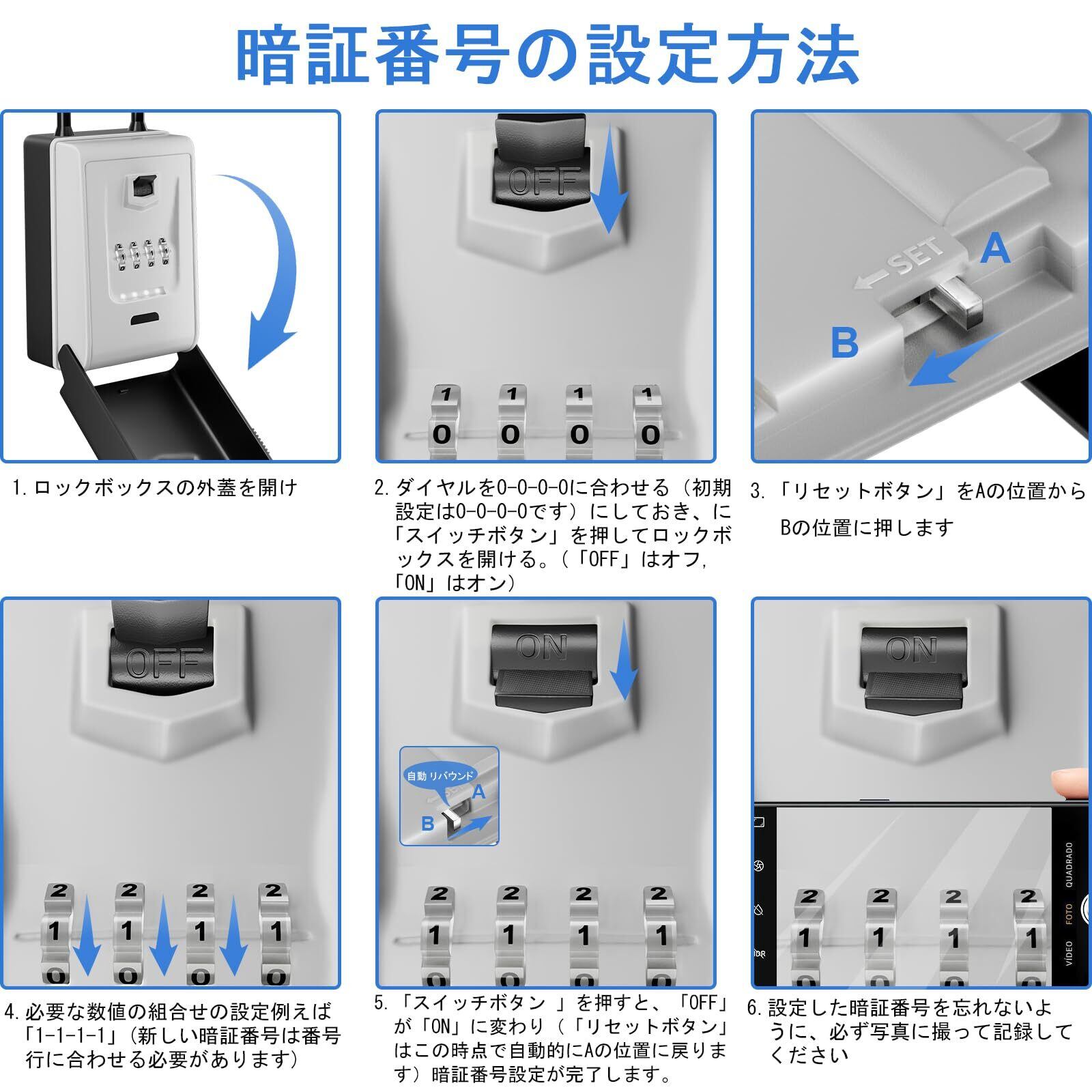 ▶使い方は簡単:鍵収納ボックスには、わずか6ステップで4桁のコードをリセットできる日本語説明書が付属。取り外し可能なラッチにより、工具なしで隠しキーボックスを設置できます。ドアノブ、フェンス、手すり、パイプ、郵便受けなど、どこにでも掛けられます