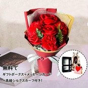 母の日のプレゼント ソープフラワー ギフト 人気 造花 バラ シルクスカーフ付き メッセージカード付き Lalunaカーネーションとバラ花束 母親、妻、彼女、女性向けのギフト プロポース 敬老の日、誕生日、記念日、結婚記念日、ホワイトデー、バレンタイン クリスマスの贈り物(赤い)
