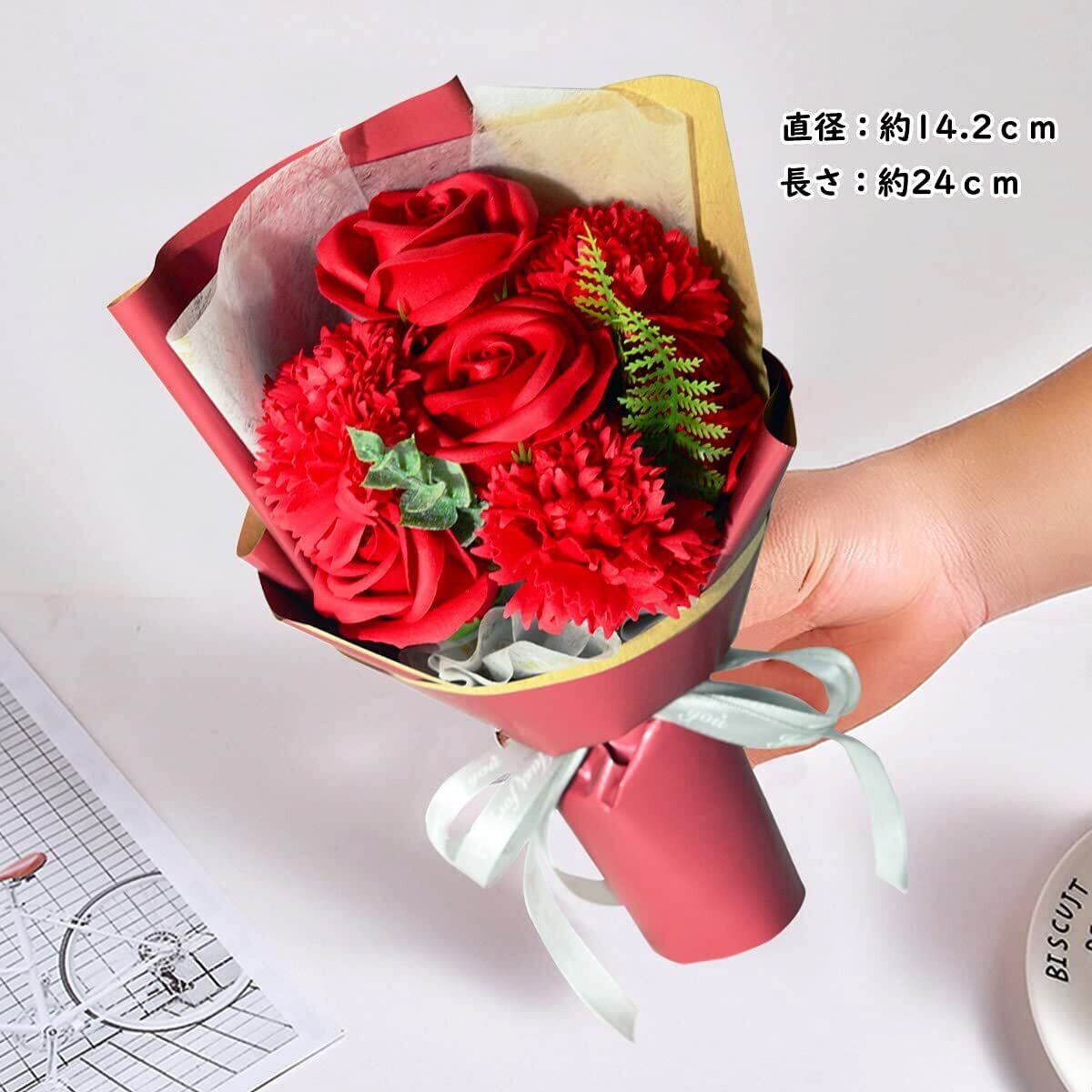 母の日のプレゼント ソープフラワー ギフト 人気 造花 バラ シルクスカーフ付き メッセージカード付き Lalunaカーネーションとバラ花束 母親、妻、彼女、女性向けのギフト プロポース 敬老の日、誕生日、記念日、結婚記念日、ホワイトデー、バレンタイン クリスマスの贈り物(赤い) | ニコニコshops