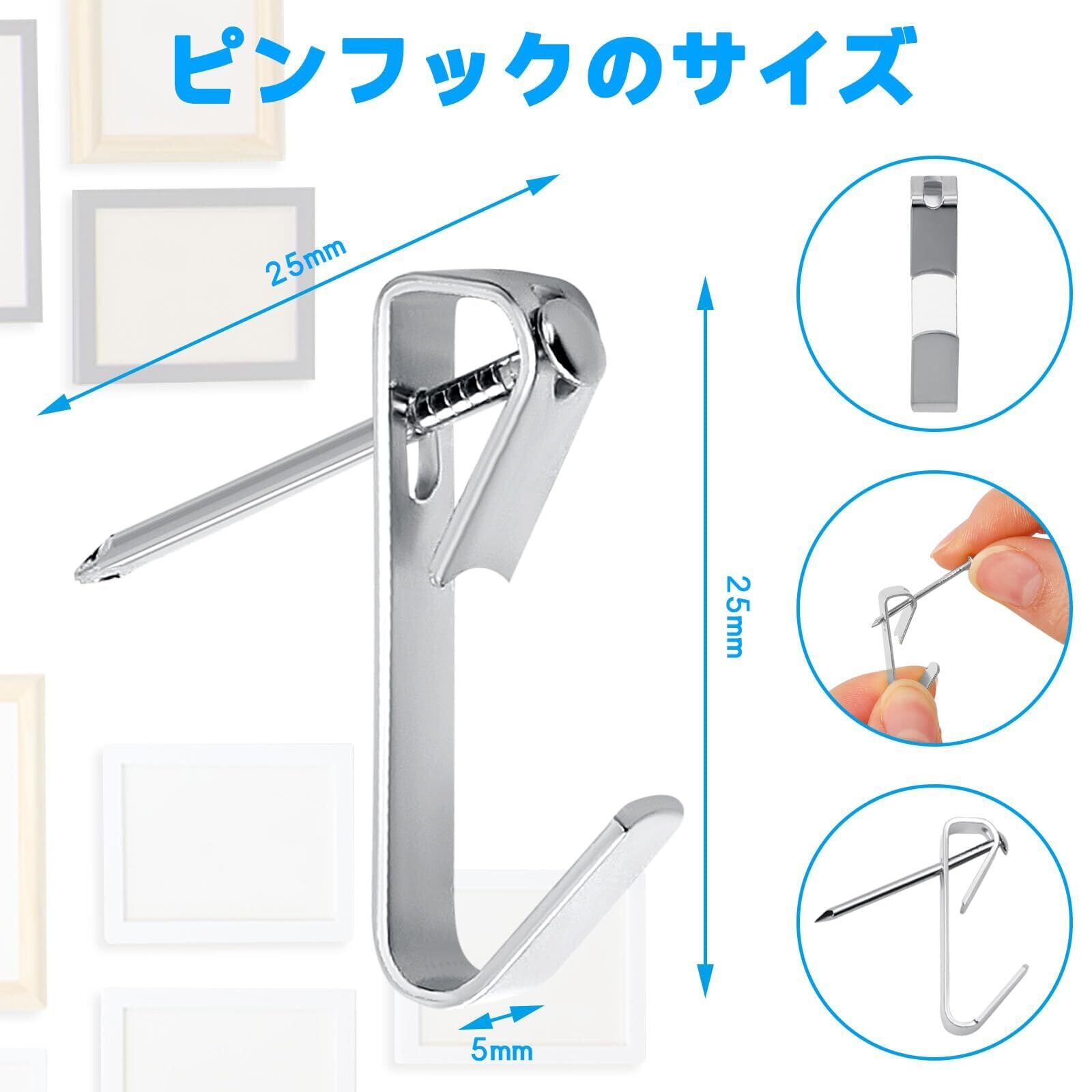 AUGSHYO ピンフック 100個セット(100フック+100針先)石膏ボード・ベニヤ・木用フック 耐荷重13kg 壁掛けフック 石膏ボード ピン 画鋲 フック 石膏ボード 写真 油絵フック 壁掛け用フック 収納ケース付き シルバー | ニコニコshops