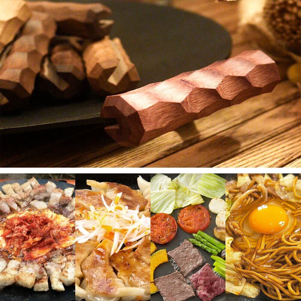 【高品質素材】このマルチグリドル取っ手は断熱性が高い木で作られ、火傷を防ぐことができます。最新モデルはウレタン塗装が施されているため、触り心地が滑らかになり、見た目も明るくなっています。火傷防止だけではなく、ツルツルした手触りになります。表面に硬い膜ができるため、汚れやシミ、水気に強く、傷も付きにくくなります。