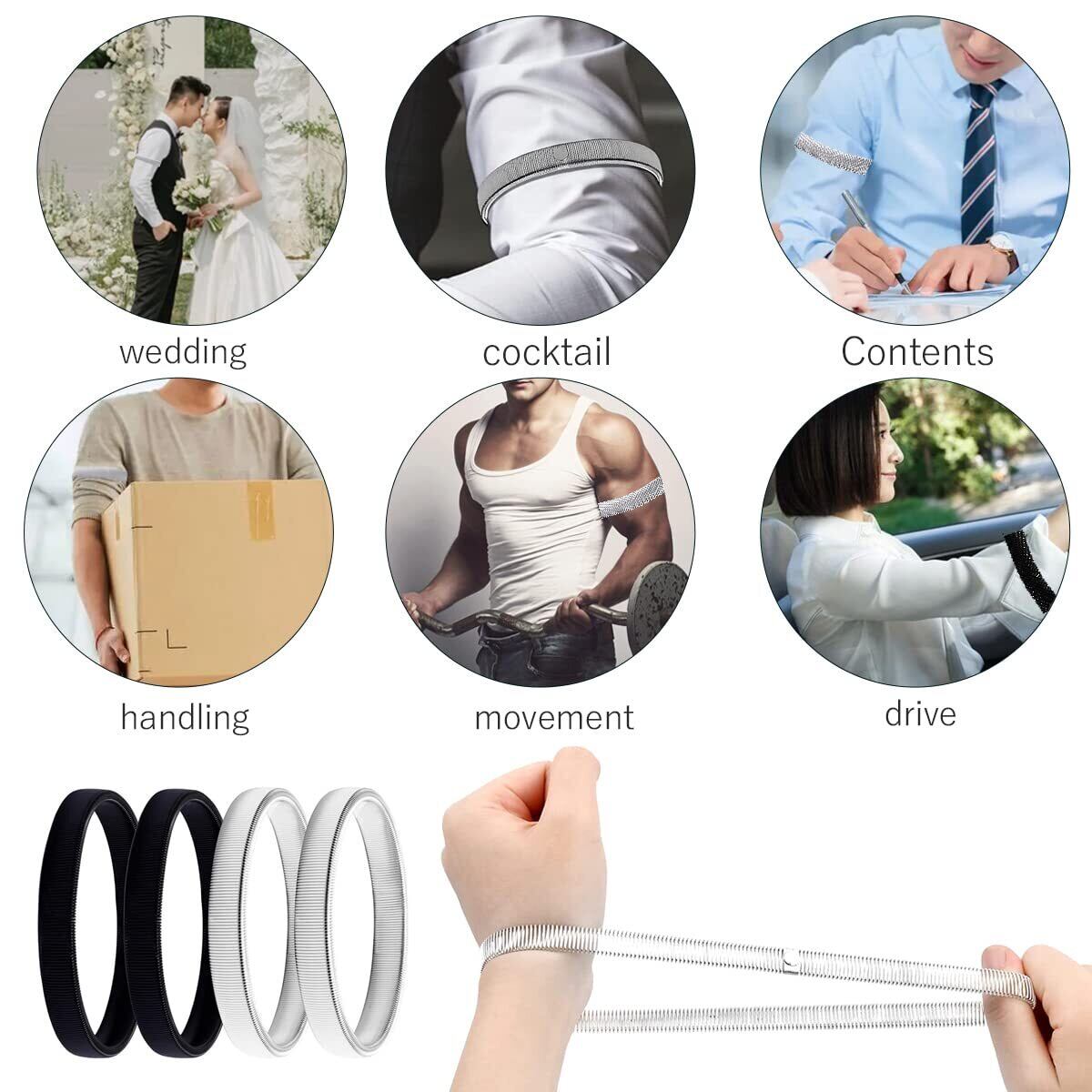 [WinsGreat] 4個セット アームバンド メンズ レディース スプリングループ式 腕バンド 袖丈 着脱簡単 伸縮性 男女兼用 結婚式 卒業式 入学式 (ブラック+シルバー)