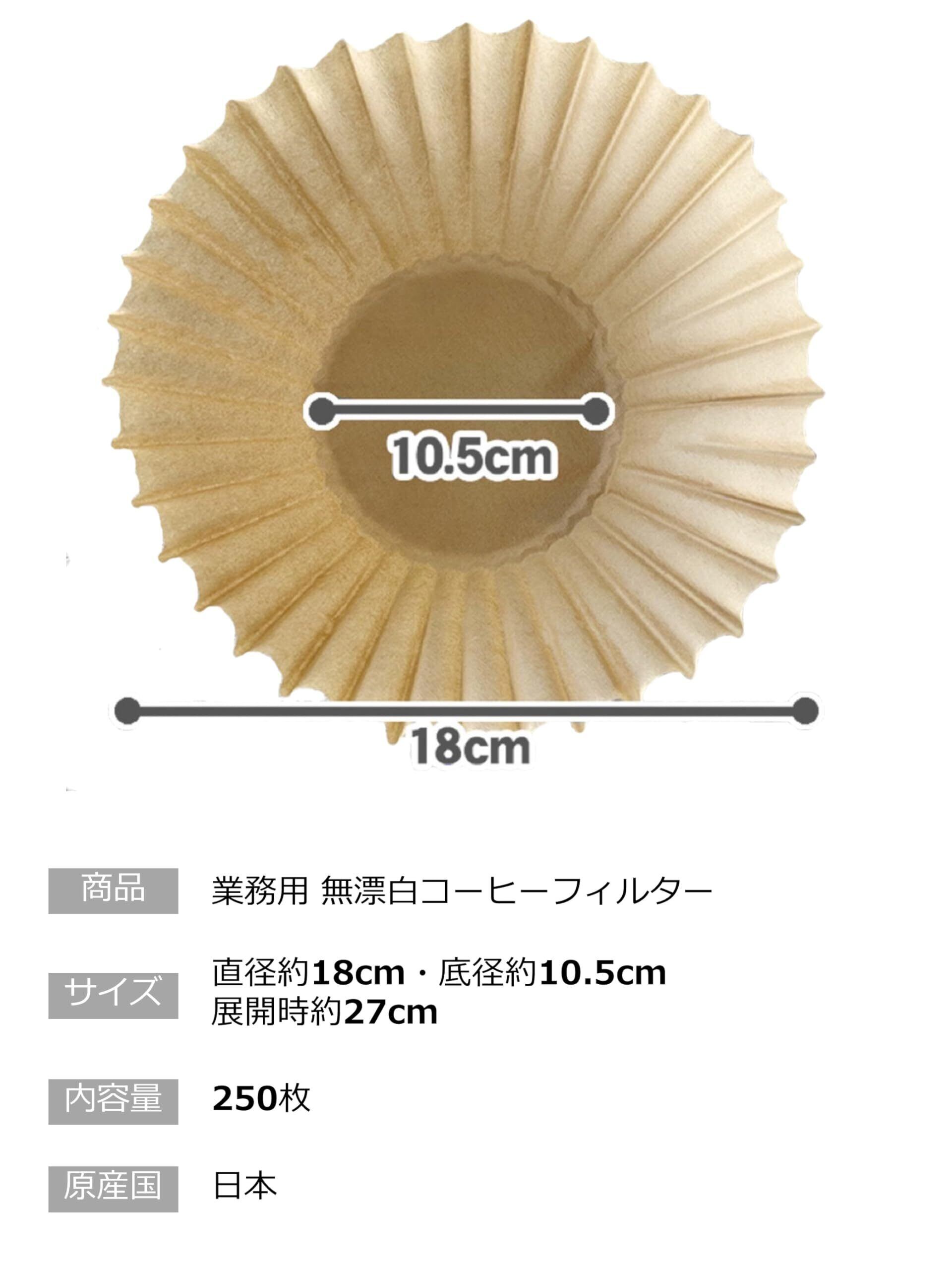 ストリックスデザイン 無漂白 コーヒーフィルター たてろ紙 250枚 未晒し ブラウン 27cm 業務用 No.270 SG-058