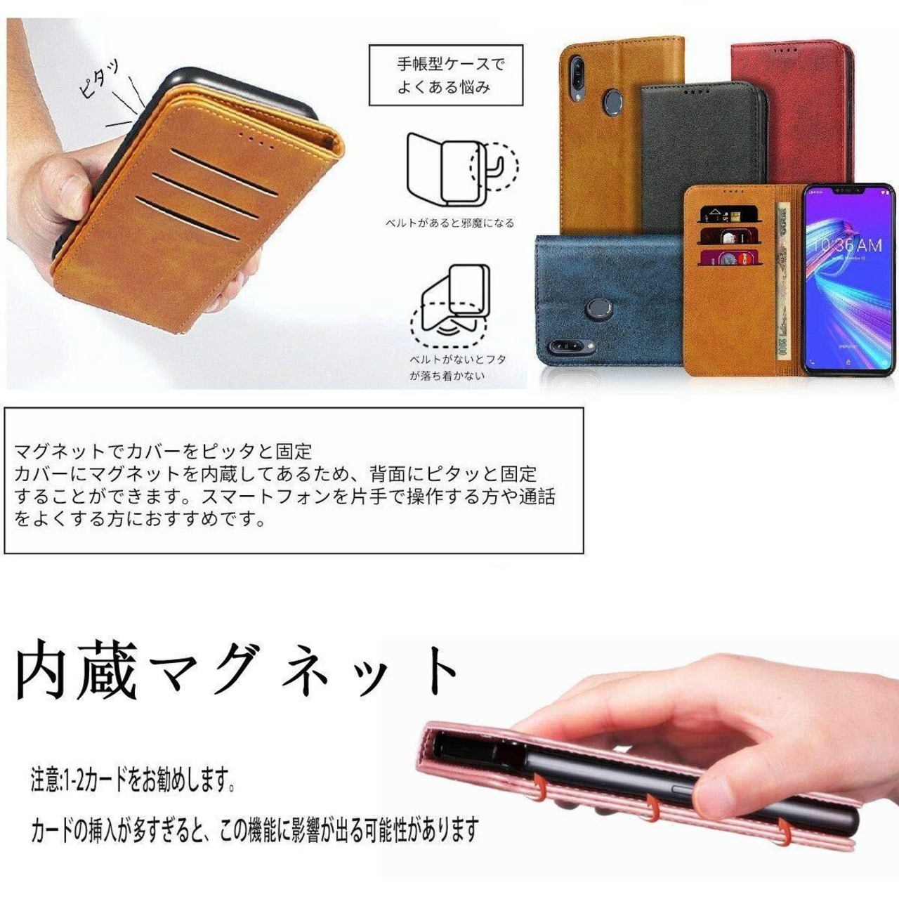 ①【上質な素材】外部は上質な合皮レザー素材を採用しており、放熱性が良く、傷や埃を防ぐことができます、滑りにくく、指紋、油分などもつきにくく。インナーケースは弾力性の柔軟黒TPU素材を採用しており、角までしっかり保護できるケースです、柔軟性があり本体への装着脱着も簡単です。衝撃吸収機能あり、しっかりの二重保護でお携帯を守り抜きます。