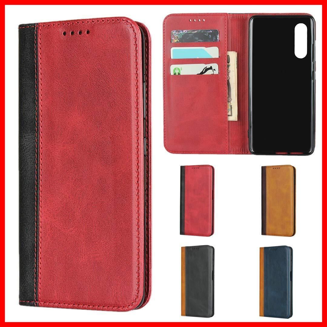 Galaxy A41 日版 ケース 手帳型 対応 Samsung Galaxy A41 SC-41A / SCV48 携帯カバー Pelanty 財布カード入れ 横置きスタンド機能 内蔵マグネット 合成皮革 +TPU スマホケース 耐衝撃 2色組合せ レッド X ブラック