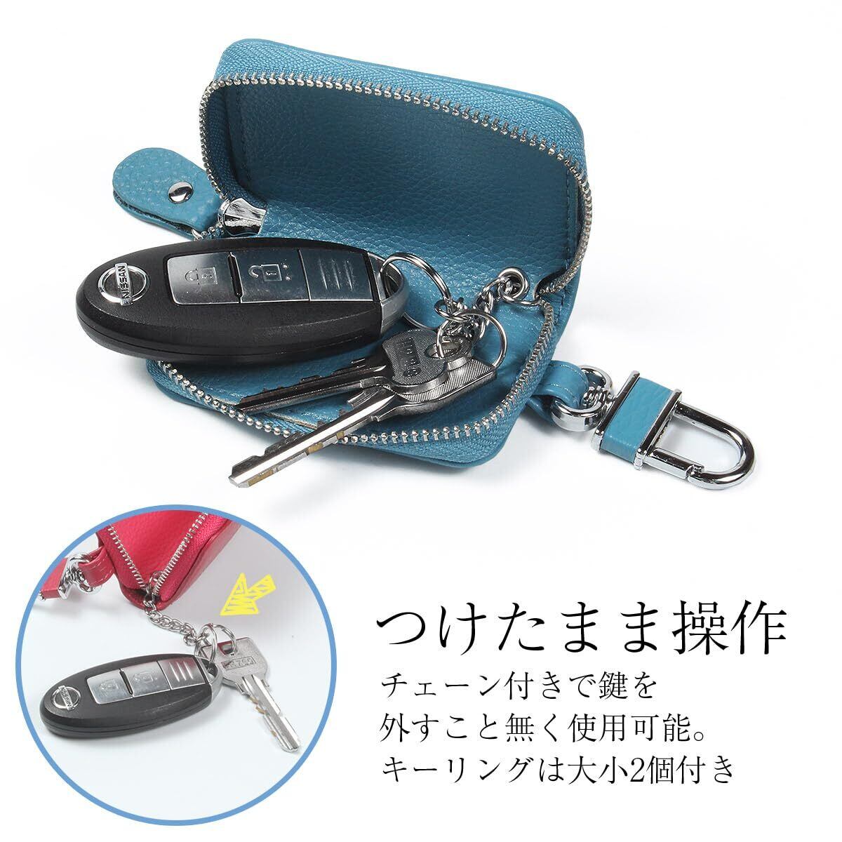 【入れたまま操作】 チェーン付きで鍵を外すこと無く使用可能。 キーリングは大小2個付き