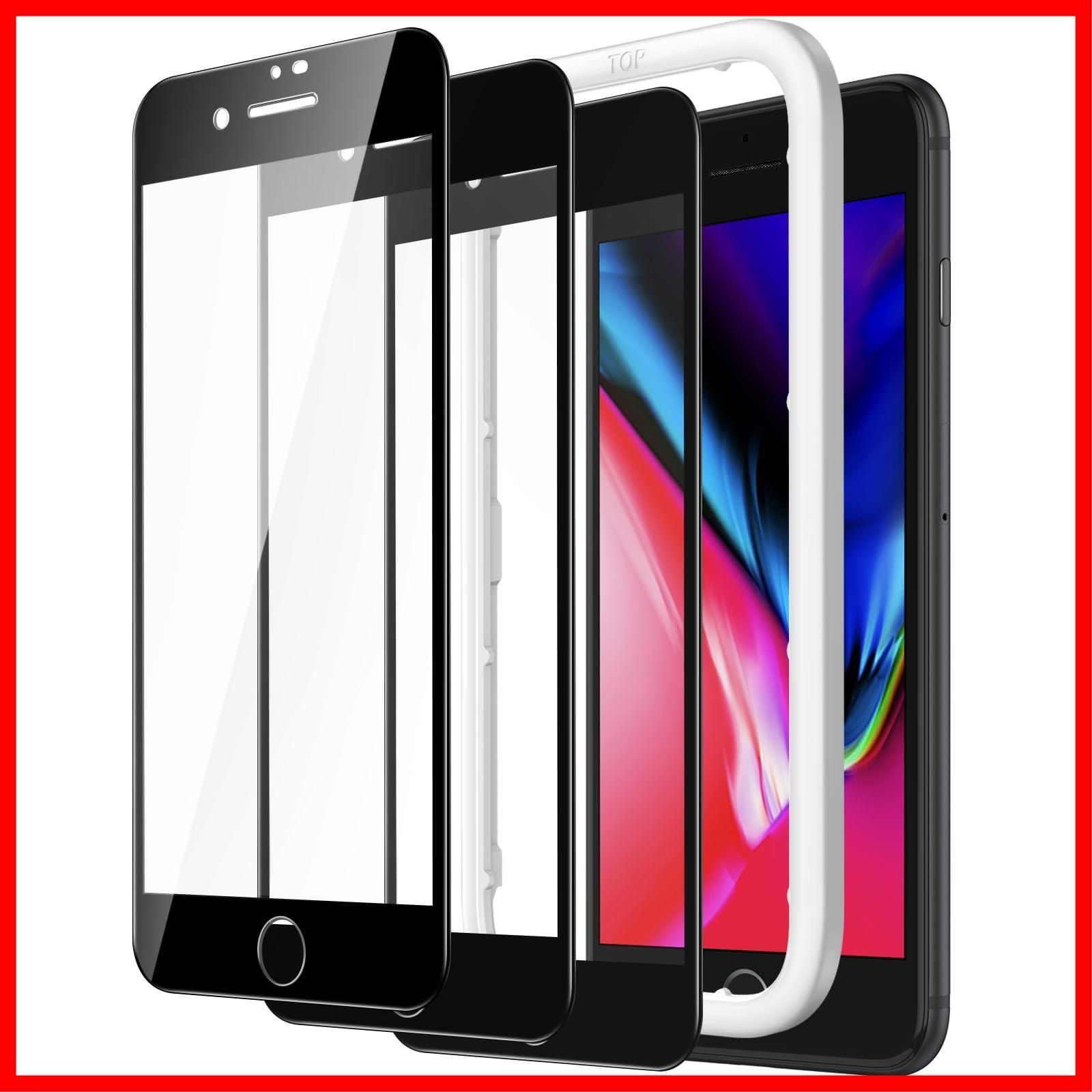 JETech iPhonese3/iphonese2/iPhone 8/7 (4.7インチ用) 全面保護フィルム 強化ガラスフィルム 黒縁 ガイド枠付き ケースに干渉なし HDクリア 3枚セット (ブラック) | ニコニコshops