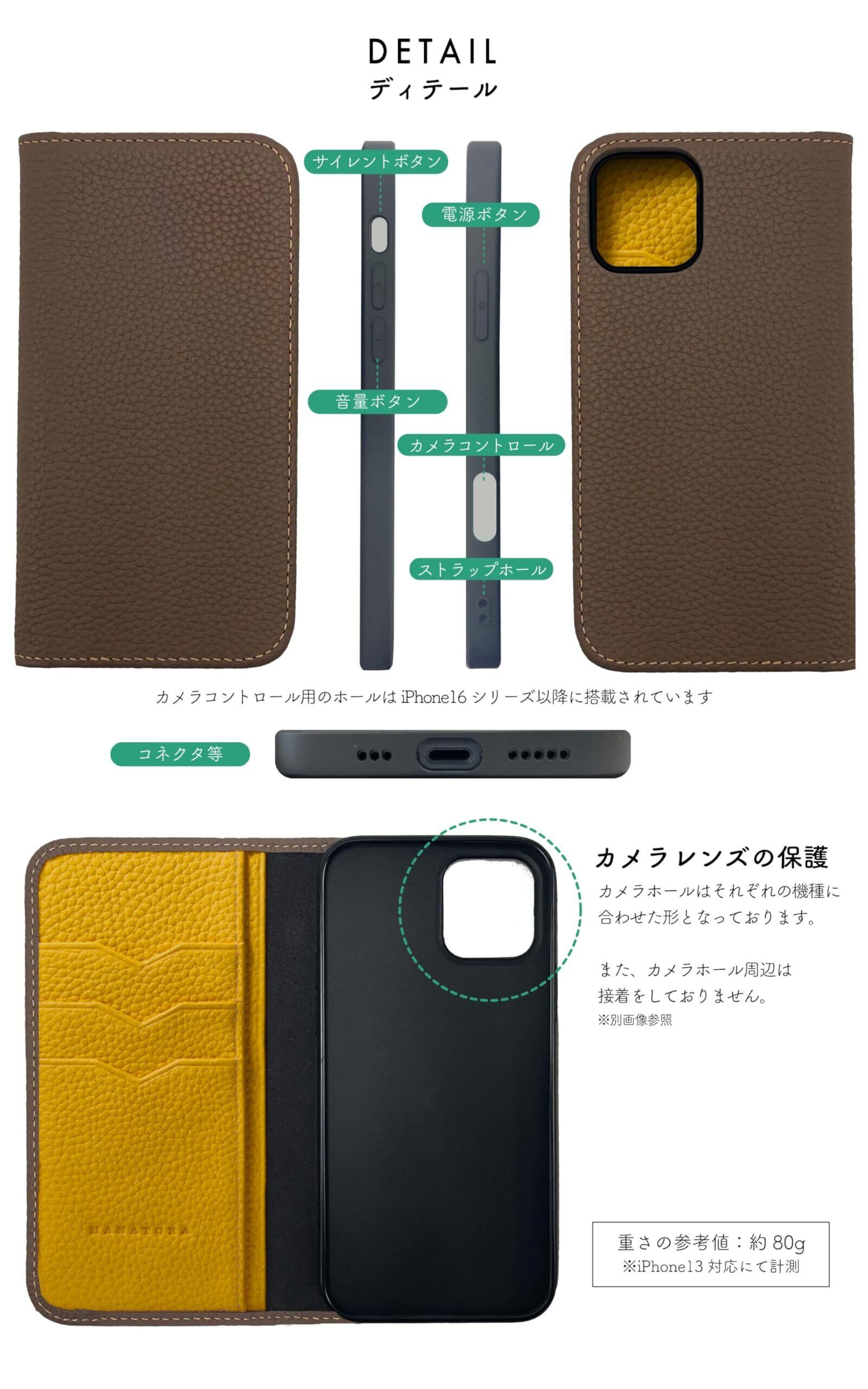 HANATORA iPhone13 ケース 手帳型 本革 スマホケース スマホ スタンド コードホルダー 付き シュリンクカーフレザー ギフト マグネットなし トープ + イエロー PH-13-Taupe-YL ギフト 誕生日ギフト 女性 彼女 お母さん お父さん 人気商品 30代 40代 50代 60代 70代
