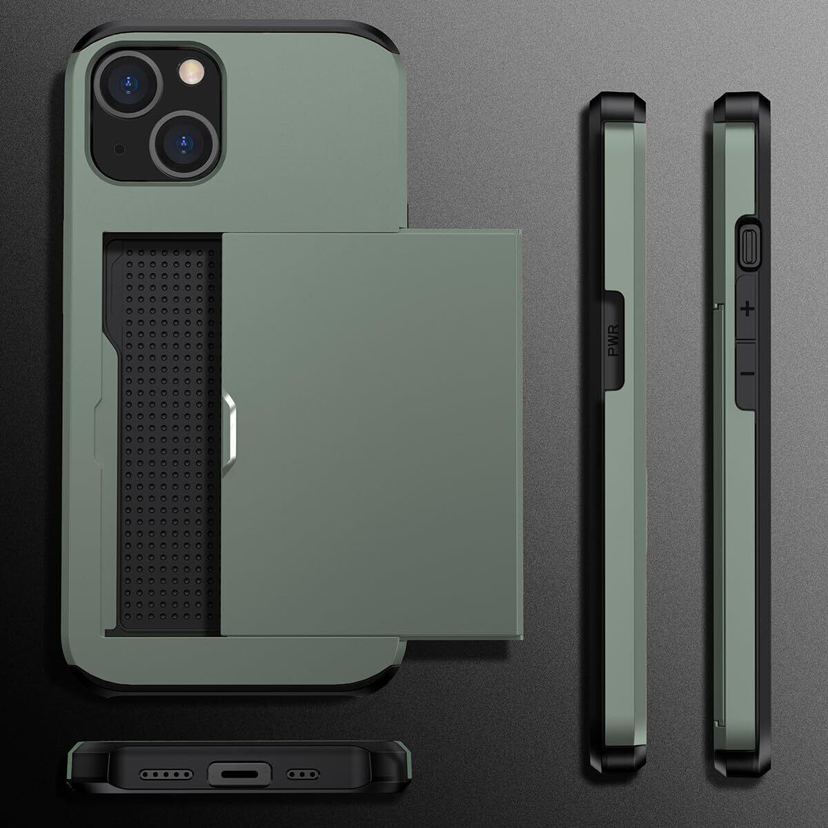 MuZiF iPhone XR 用 ケース カード収納 耐衝撃構造 米軍耐衝撃 全面保護 擦り傷防止 PC 背面収納 アイフォンXR 用 カバー ケース(iPhone XR,グリーン) | ニコニコshops