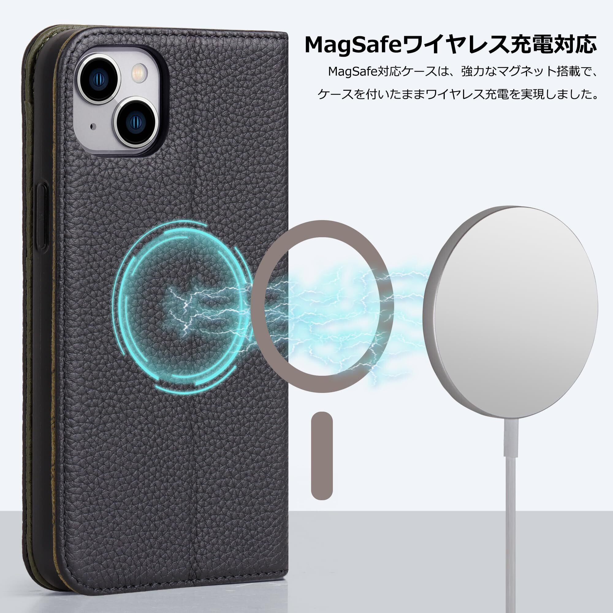VISOUL iPhone15 Plus 対応 手帳型 ケース 本革 MagSafe対応 アイフォン15 プラスケース レザー 手帳型ケース カード収納 携帯ケース 全面保護 柔軟なTPU素材 マグネット式 スタンド機能 スマホケース アイホン15 Plus グリーン