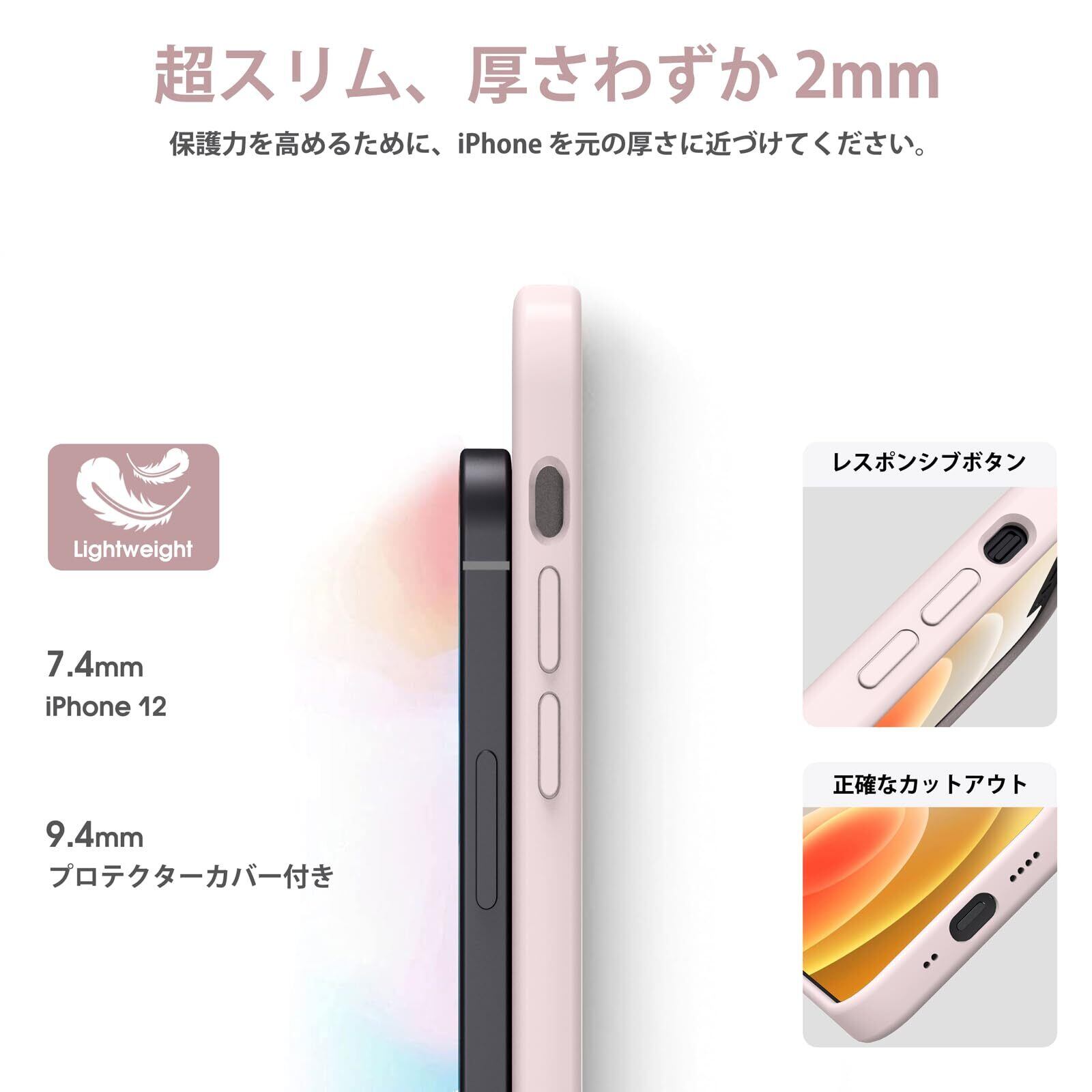 Supdeal iPhone 12 ケース 対応液体シリコン [耐衝撃] [柔軟TPU液体シリコン] [ソフトタッチ] [レンズの全面保護] [指紋防止] [落下防止] [滑り防止] 軽量 4層保護 アイフォン 12 スマホカバー 6.1インチ(ライトピンク)