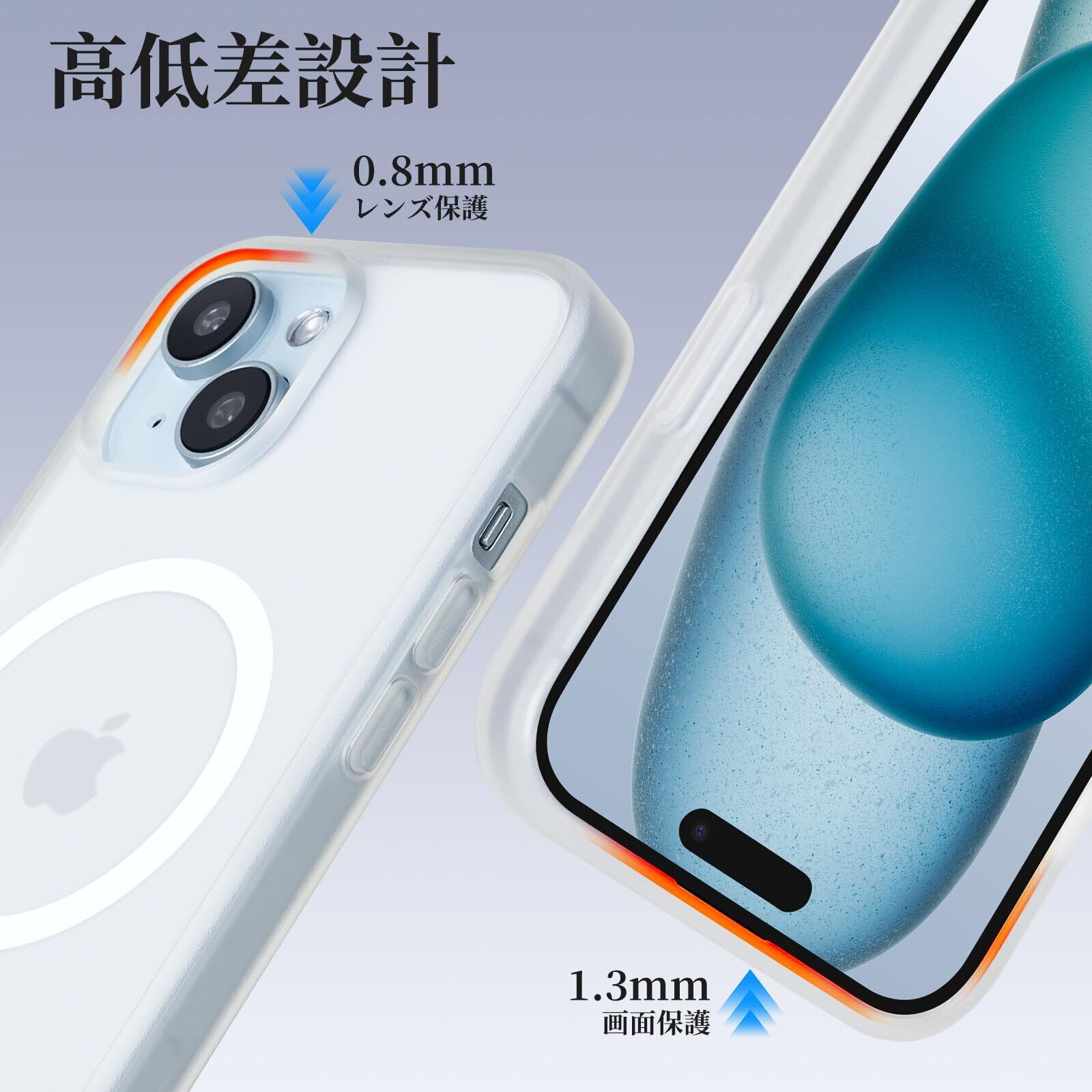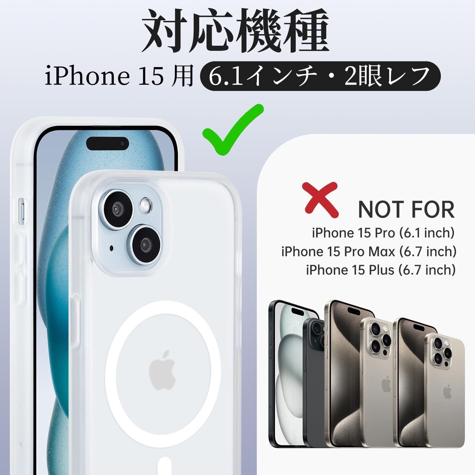iPhone 15 用 ケース Magsafe対応 iPhone 15 ケース 耐衝撃 マット 滑り止め 指紋防止 米軍MIL規格 黄変防止 耐久性 ワイヤレス充電対応 半透明 マグネット搭載アイホン15 携帯ケース 6.1 インチ (マットクリア) | ニコニコshops