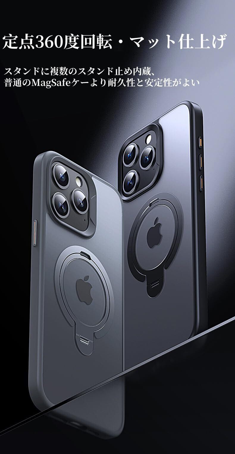 2024新登場・スタンドながらMagsafe充電対応:2024最新デザイン、スタンドリングを開いたままでMagsafe充電対応で、映画観賞やテレビ電話チャットなどの時、スタンドを利用したままでも充電対応で超便利です。