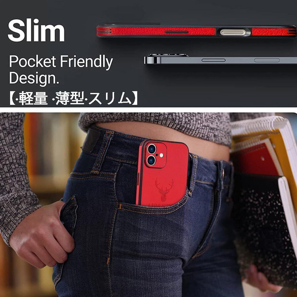 JOOBOY 2024新型 iPhone 16 用 ケース 6.1" 耐衝撃 薄型 レンズ保護 コンパクト PC素材 背面 高級なPUレザー ハードカバー マット加工 指紋防止 カメラ保護 携帯カバー iPhone16 用 カバー (赤) | ニコニコshops