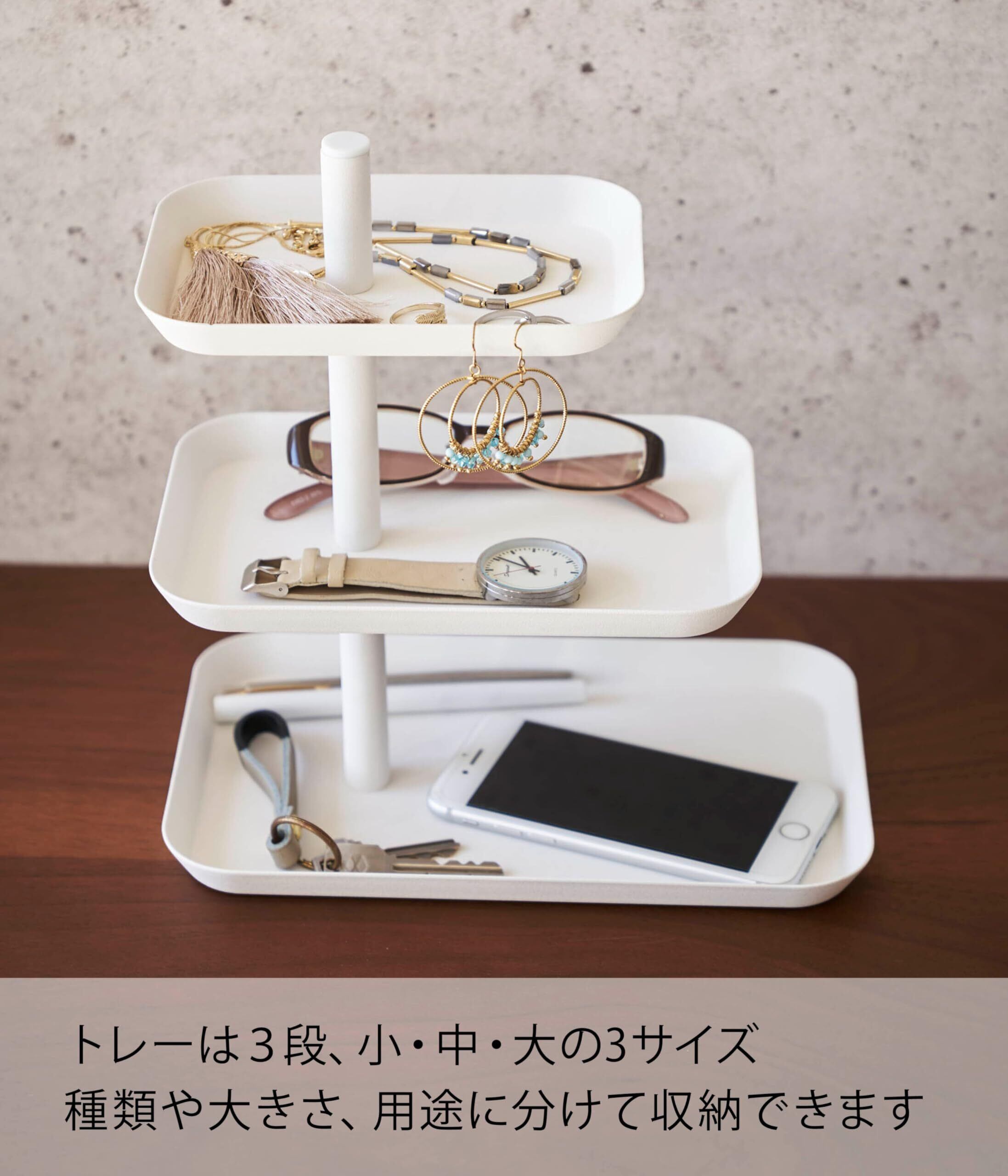 山崎実業(Yamazaki) アクセサリー 3段 トレー タワー ホワイト 約W24.7XD15.7XH25.7cm タワー 小物入れ アクセサリー収納 4724