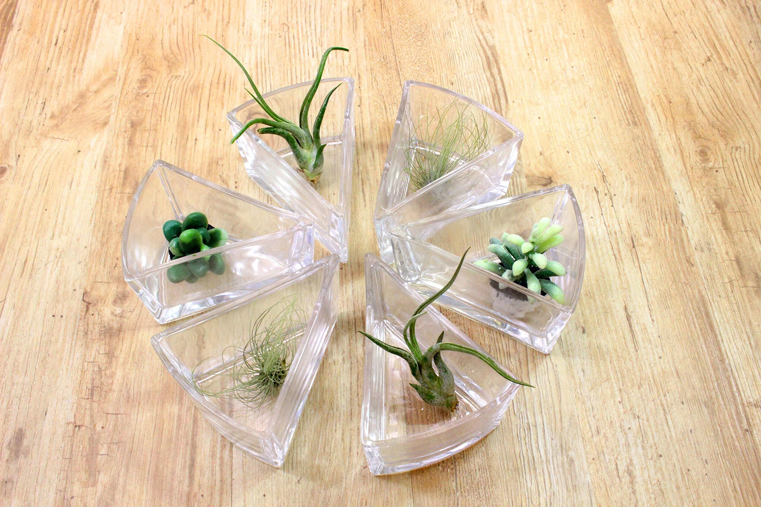 透明度の高いガラスで作られたフラワーベースです。<br>6個入りです。<br>※製造工程の都合上、造形に多少の歪みや引きつれ、表面に傷や曇り、内部に気泡等が生じることがございます。何卒ご了承ください。