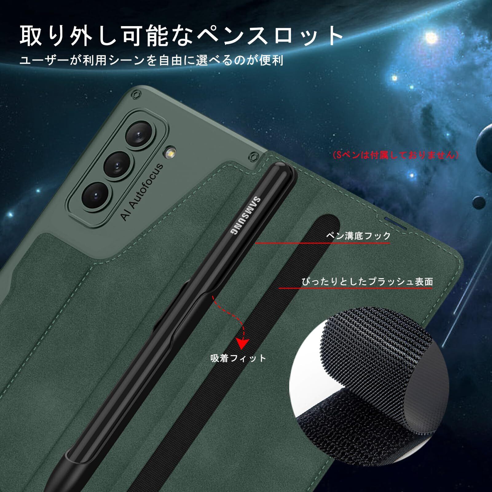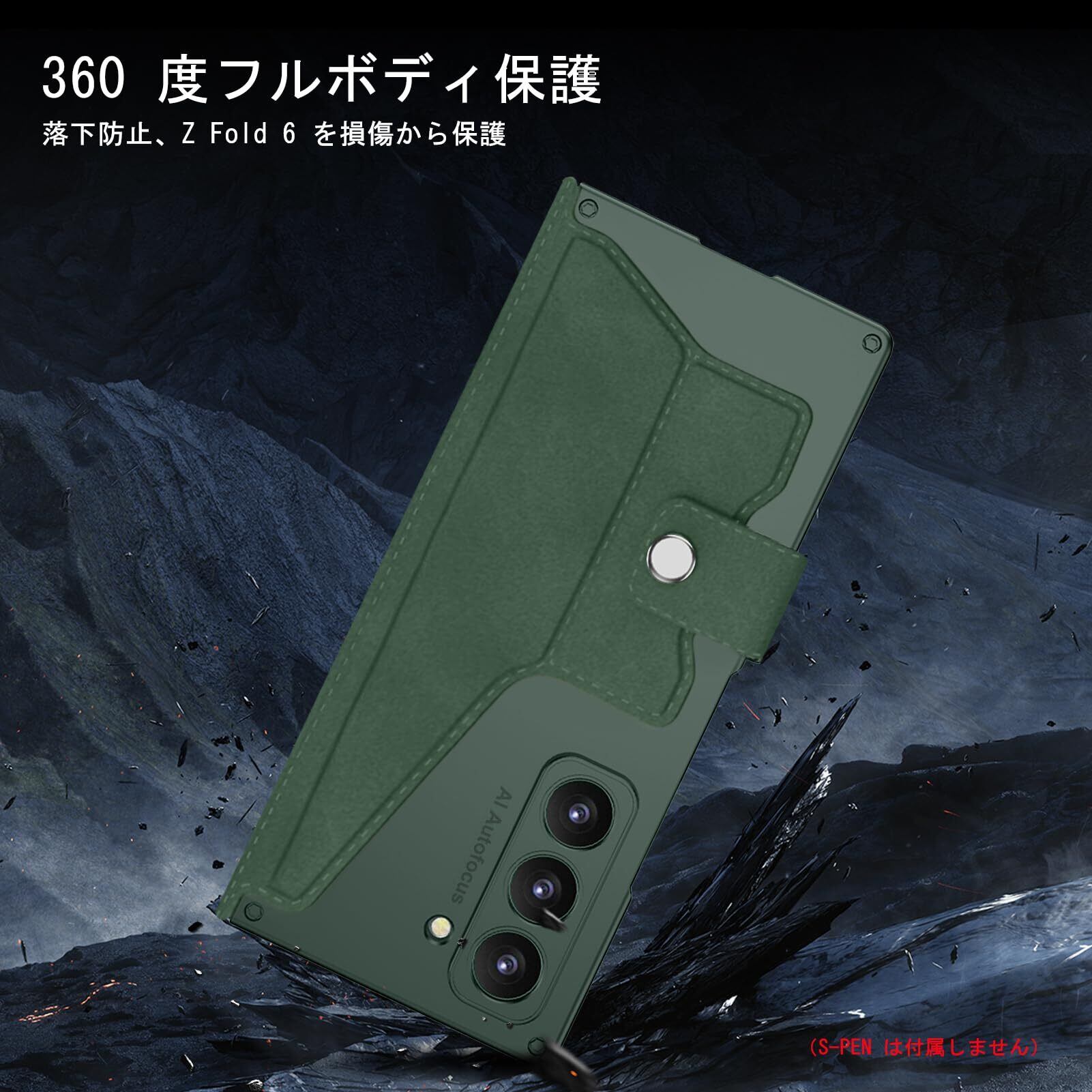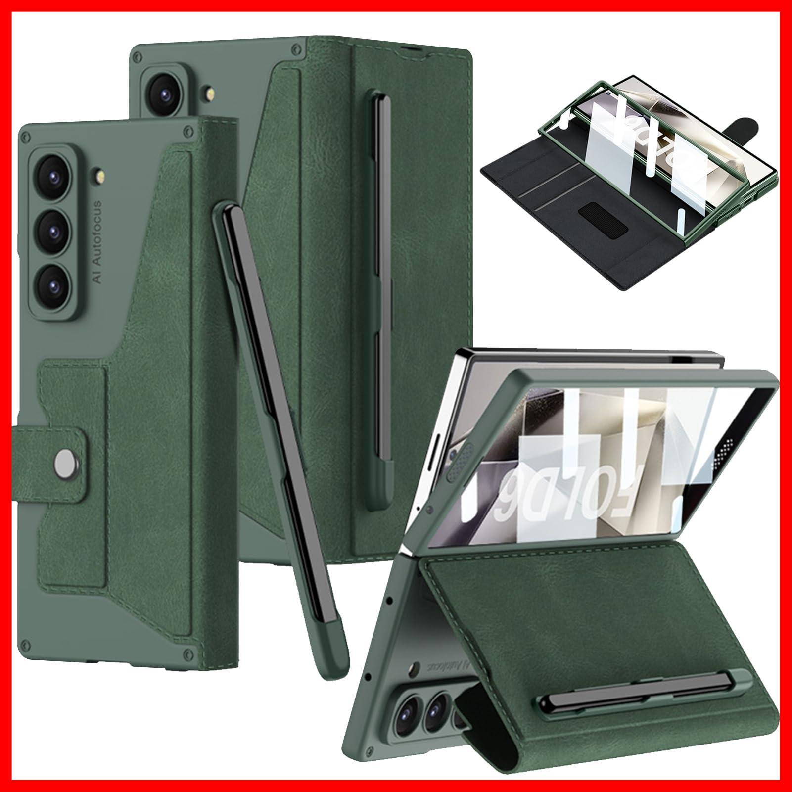FODDOM Galaxy Z Fold6ケース ギャラクシーz フォールド6ケース 耐衝撃/汚れ防止/おしゃれ レザー/手帳型/スタンド機能/カード収納 レンズ保護 Fold6用全身保護 (グリーン) | ニコニコshops