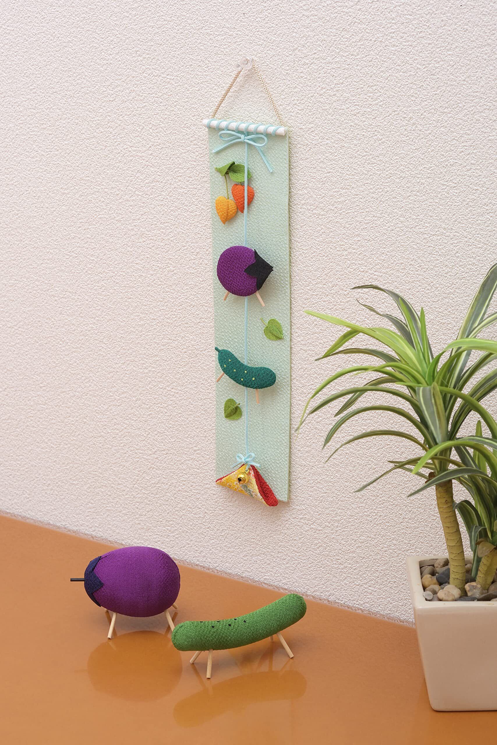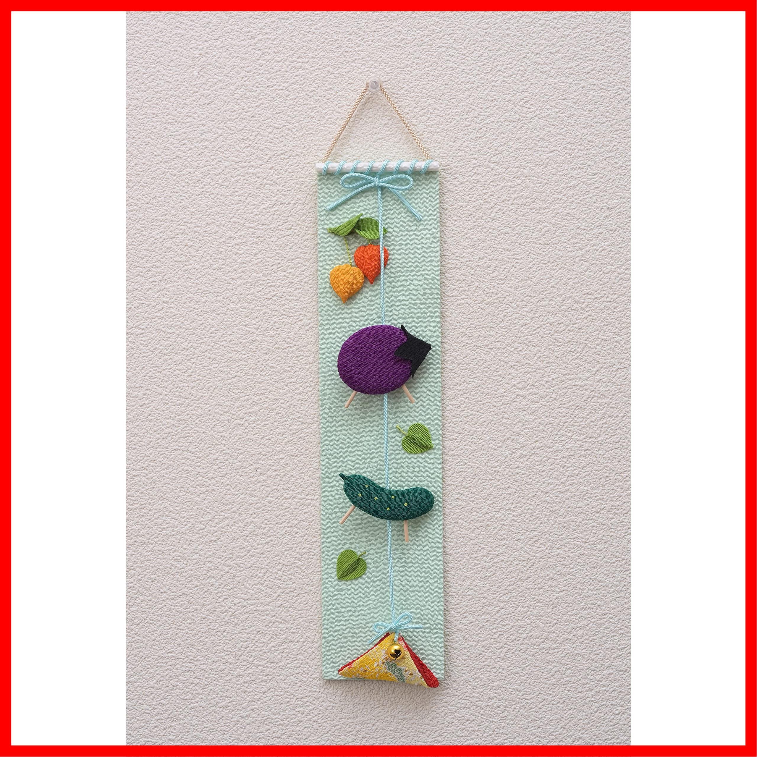リュウコドウ お盆飾り 盆飾り 可愛い インテリア お盆 御盆 ちりめん 吊りタペストリー(お盆) 約縦34.0(紐除く縦30.0)×横7.0×厚1.3㎝ 供養 初盆 きゅうり なす