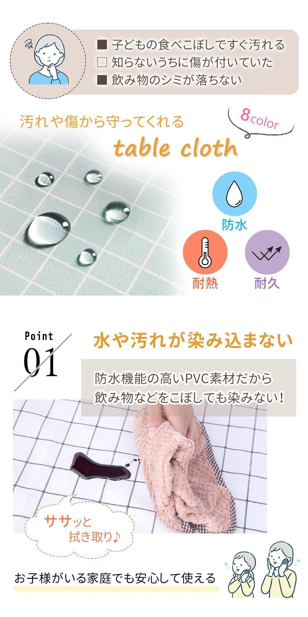 mitas テーブルクロス ビニール 撥水加工 約140×180cm 北欧風 耐熱 滑り止め 汚れ防止 長方形 チェック柄 カット可能 PVC素材 テーブルマット おしゃれ かわいい キッチン インテリア ダイニング | ニコニコshops