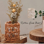 ラタンを使用したナチュラルで可愛いガラスベース。ドライフラワーを飾ったりするのにGOOD。