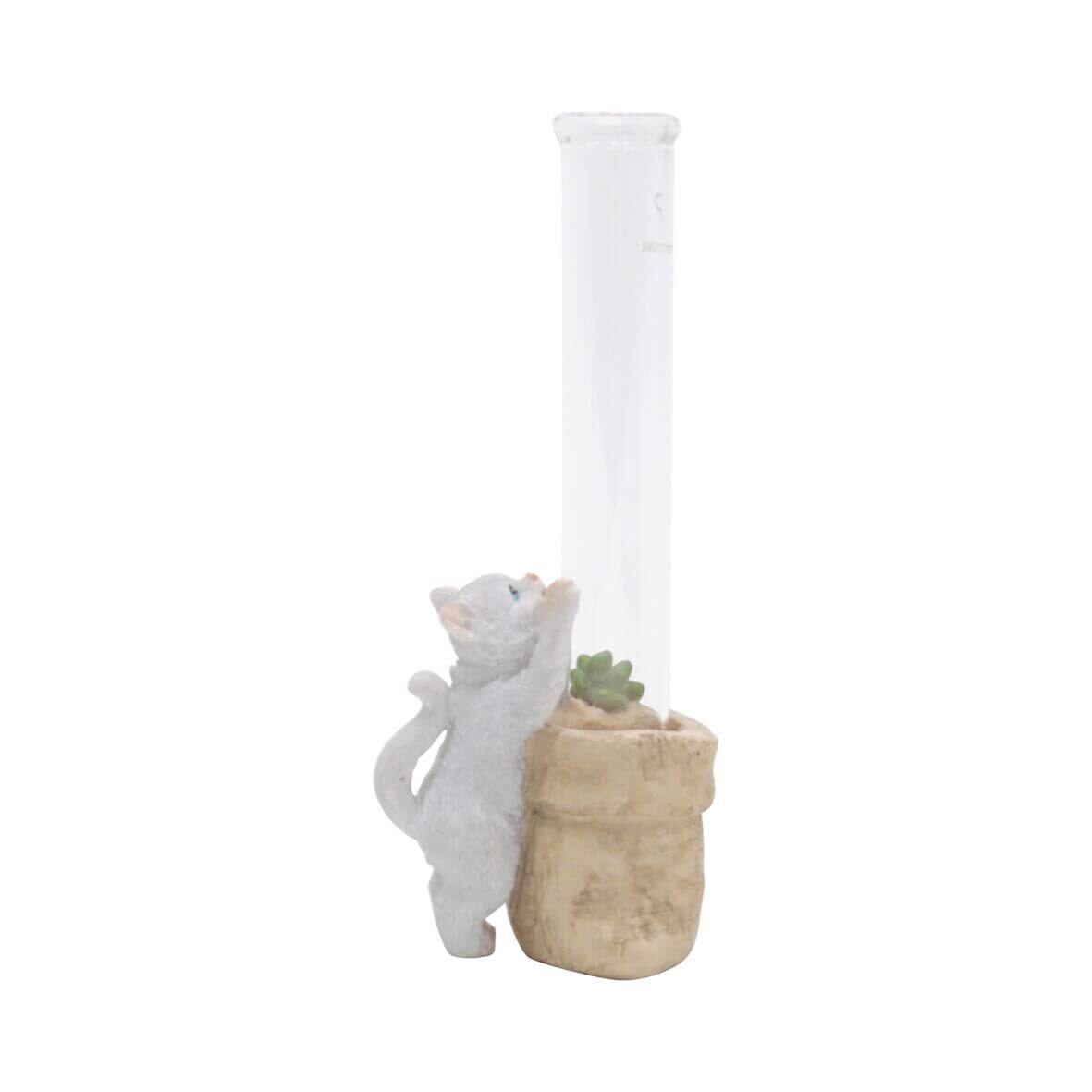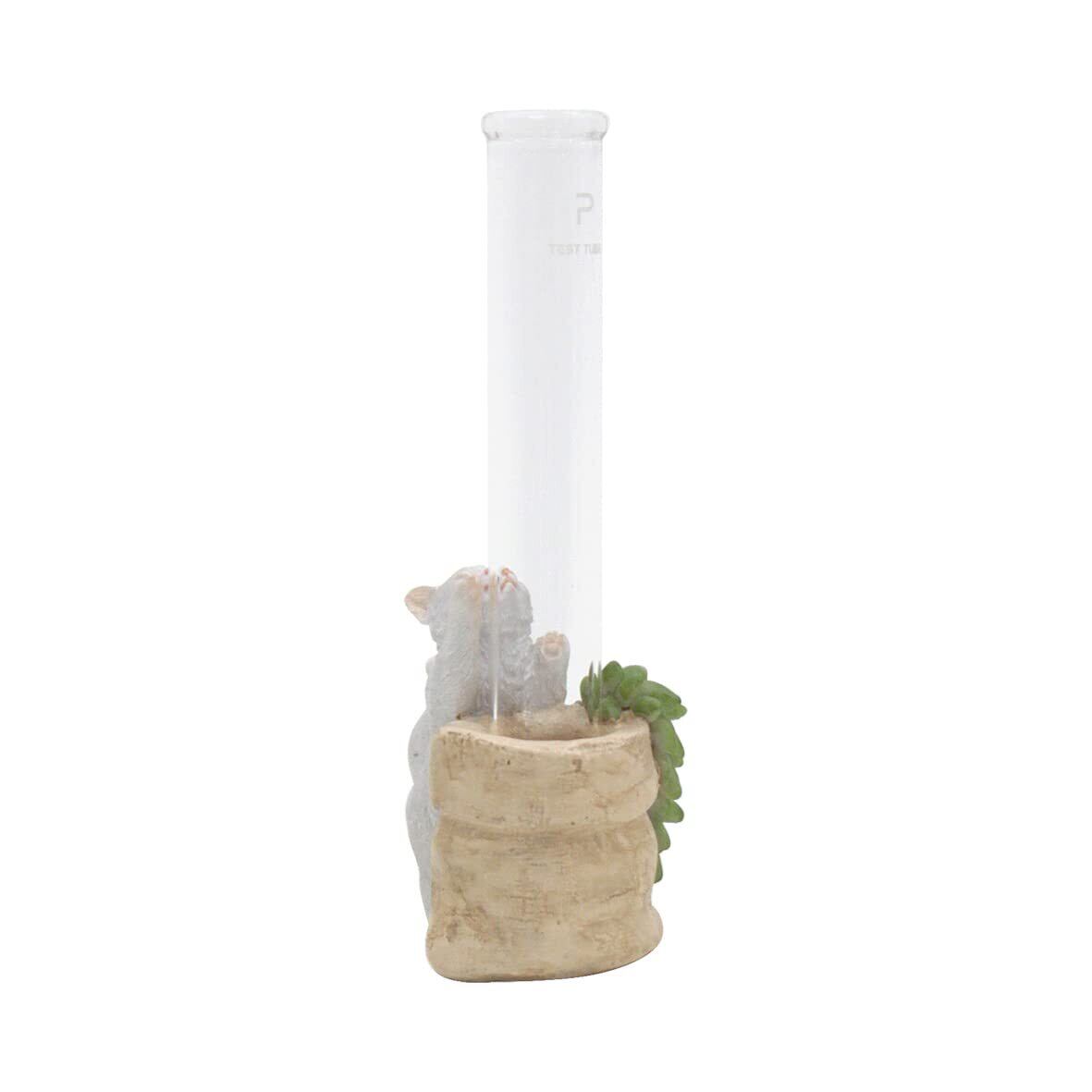 キーストーン(Key Stone) アニマル フラワーベース 白猫 サイズ:約W4 D4.8 H5(含むガラスベース 約H11) IN054520