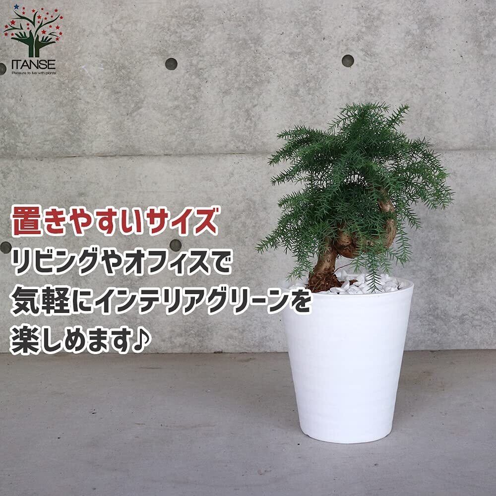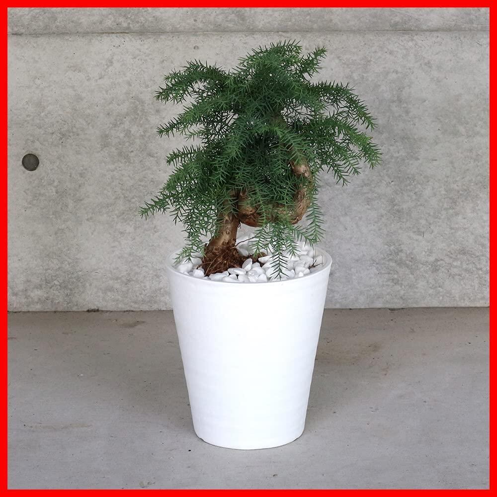 アロカリア 8号鉢 盆栽古木風 そのまま飾れる白プラ鉢仕立て【品種で選べる観葉植物】オーストラリア東部に分布する常緑針葉樹。寒さにも比較的強く、外でも慣らしていけば0度くらいまでは冬越しできます。力強い曲がり樹形仕立ては、まるで盆栽のような雰囲気がありますが、盆栽を育てるよりも手入れは簡単です。剪定をすることによって、お好みの雰囲気に仕立てられます。 | ニコニコshops