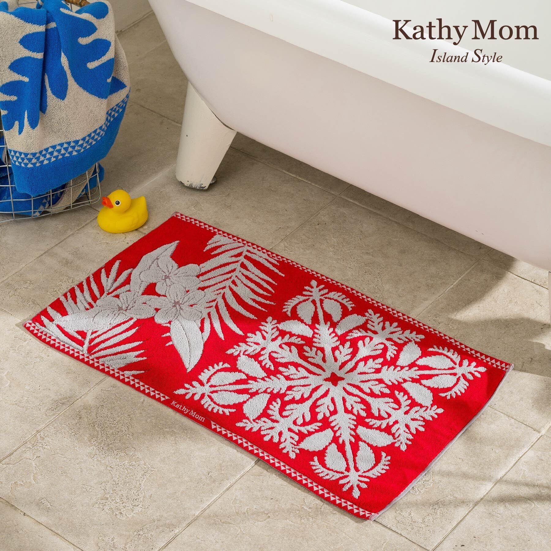 [キャシーマム アイランドスタイル] バスマット ハワイアンキルト柄 メレオハナシリーズ 86103105 タオル 女性 86103105F シャワーツリー レッド[F] 約 横40cm×縦70cm