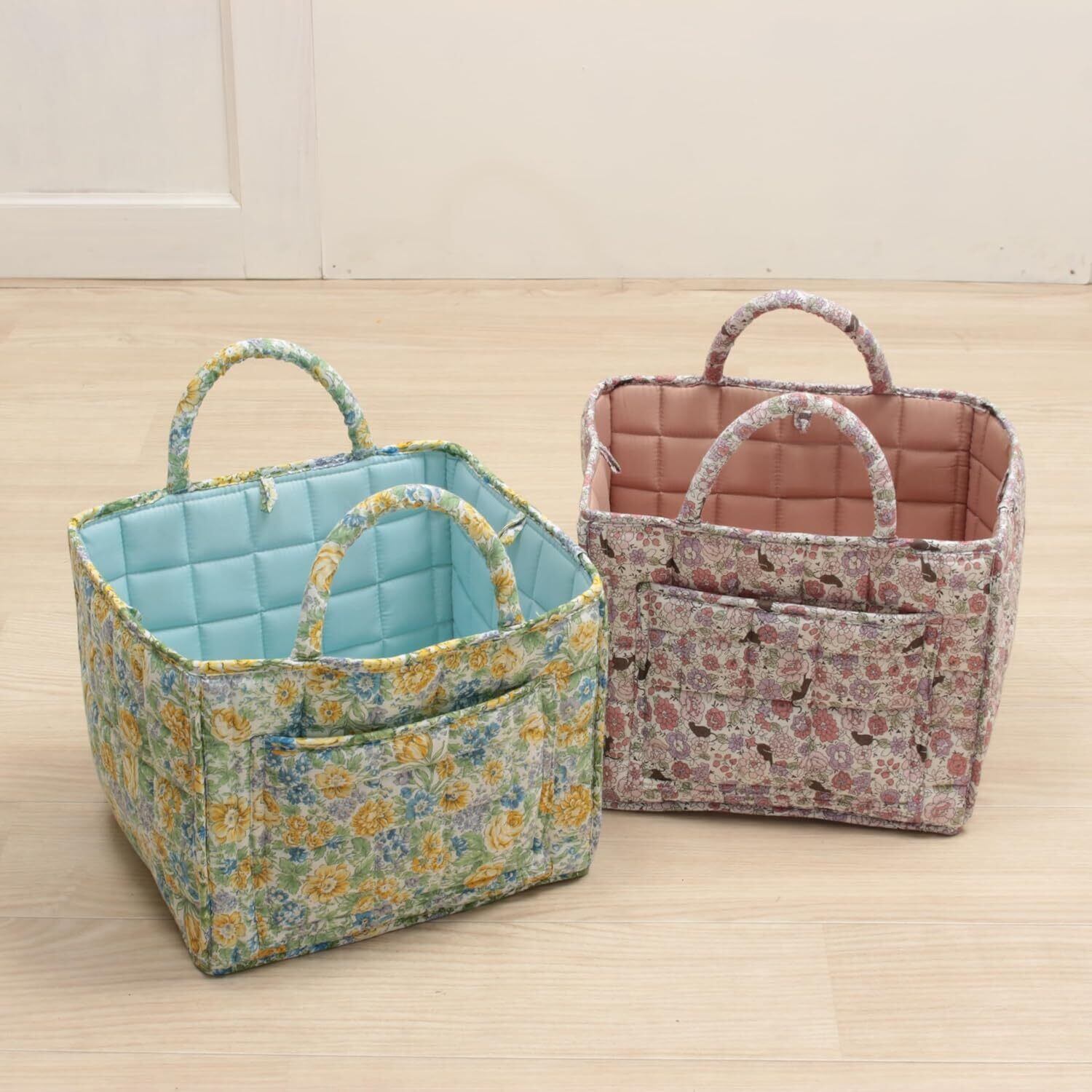プリントキルト ソフトバスケット 約31×26×25cm (パープル) バスケット 花柄 インテリア収納 収納ケース おしゃれ 小物入れ 大容量 新聞ストッカー おむつ入れ おもちゃ入れ (ブルー) | ニコニコshops