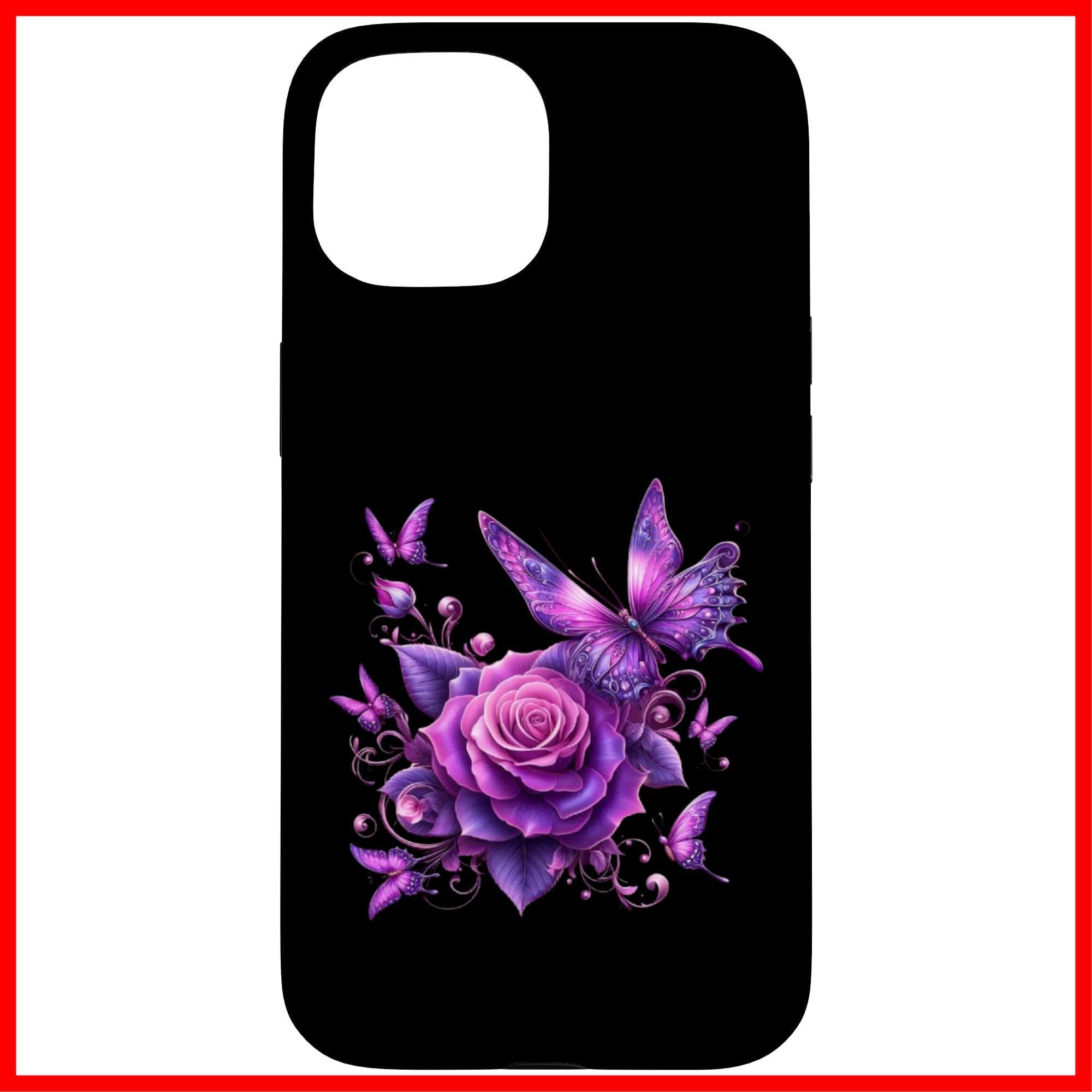 美しい蝶 パープル ローズ バタフライ 恋人へのギフトに 女性 スマホケース iPhone 15 用