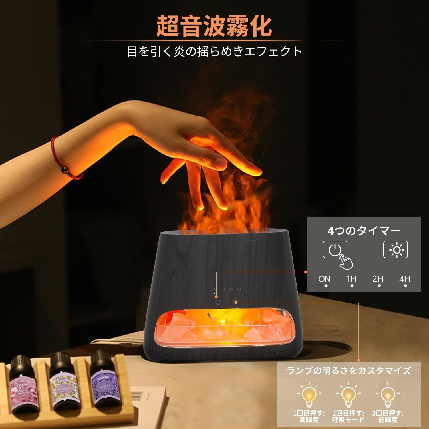 SALKING 2-in-1 アロマディフューザー 加湿器 超音波式 アロマストーン 焚き火 癒し ライトナイト付 4時間タイマー 3階段輝度調整 自動オフ 空焚き防止 静音 空気清浄 乾燥対策 お手入れ簡単 誕生日 お祝い バレンタイン プレゼント 贈り物