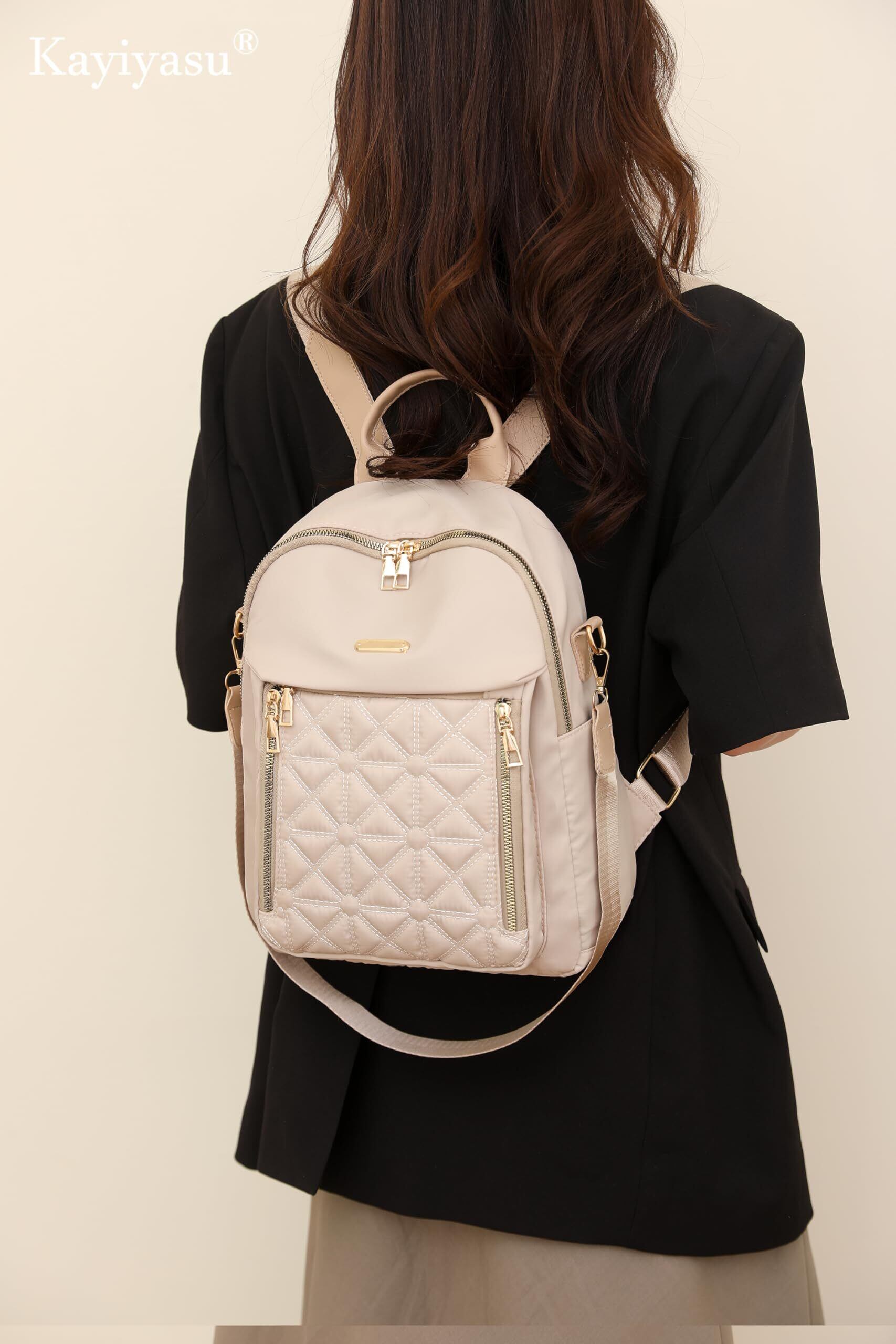 上質な生地:レディースリュックサックは最高の生地のデザインで作られ、上質なナイロン生地、撥水性、肌に優しい、しなやかで、色褪せない、生地全体が高級感があり、お出かけコーディネートも全体的にエレガントに見えます。 重量:0.43kg、遠足や通勤の女性にぴったり、ちょうどいいサイズのバックパックは、必要な物を簡単に入れることができ、上品でエレガントです。