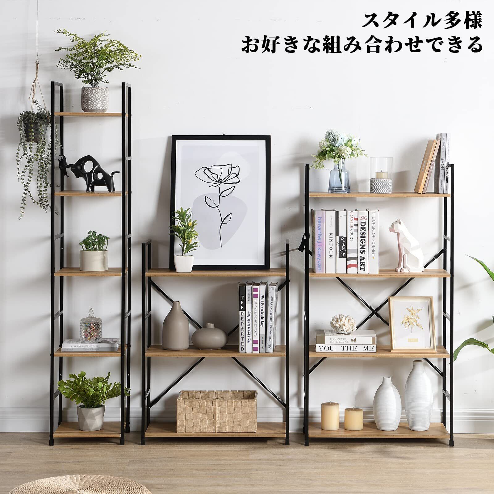 【スリム収納&おしゃれ】4段式装飾棚、シンプル&スリムな構造、ファッション、実用的です。本棚、収納ラック、植物のスタンドに十分なスペースを提供します。オフィスの棚、居間、キッチン、リビング、書斎、寝室などに適しています。