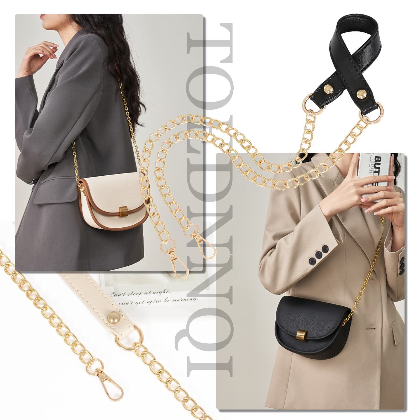 [TOEDNNQI] ショルダーストラップ バッグ用 チェーン 革 ベルト 紐 2cm 細め おしゃれ ショルダーストラップのみ 11色 付替え 交換用 ゴールド 肩紐 カバン用 単品 付け替え
