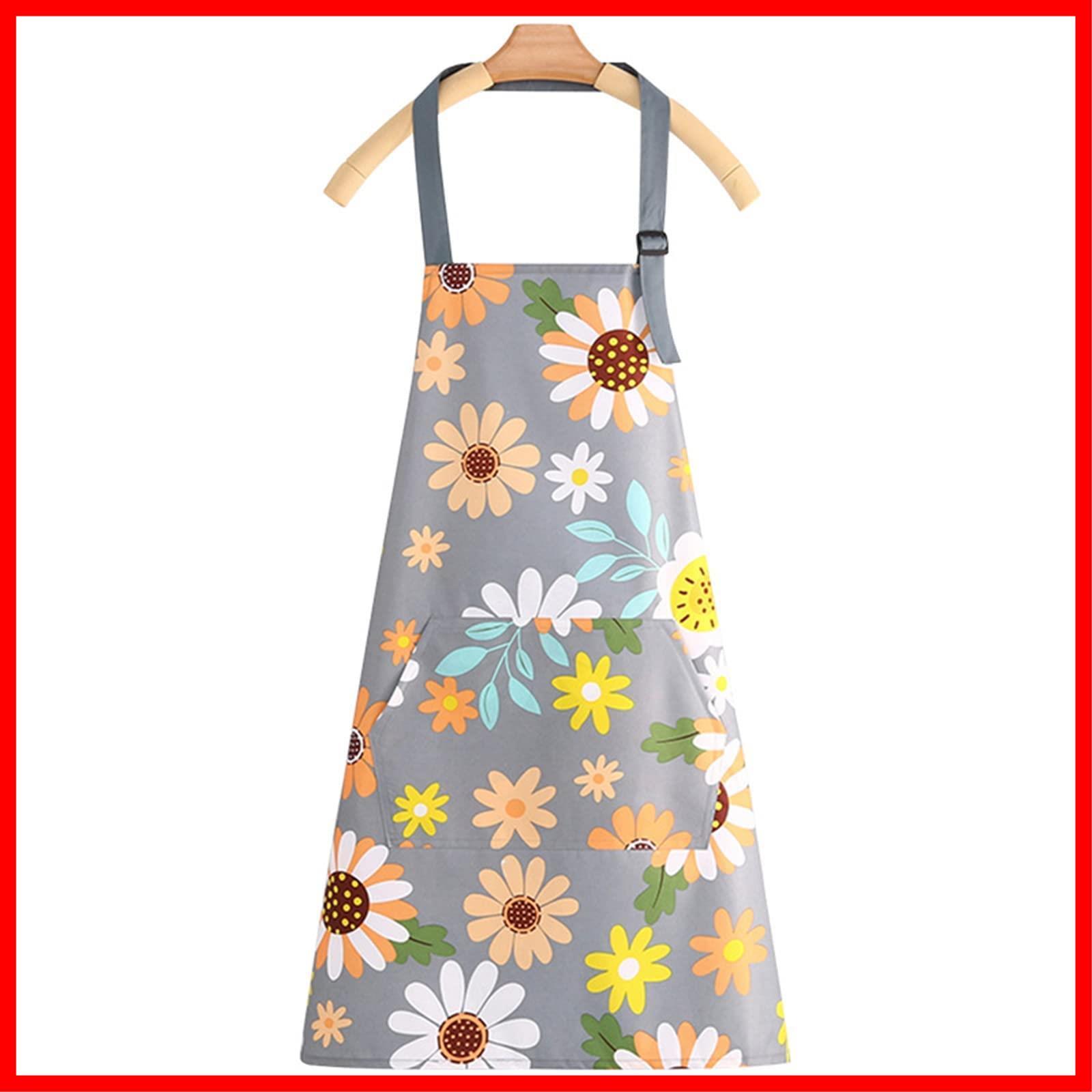 [LIKENNY] エプロン 首掛け シンプル北欧風大容量ポケット付けき 花柄 防水 汚れにくい シワ防止 料理教室用 カフェ 保育士 大人