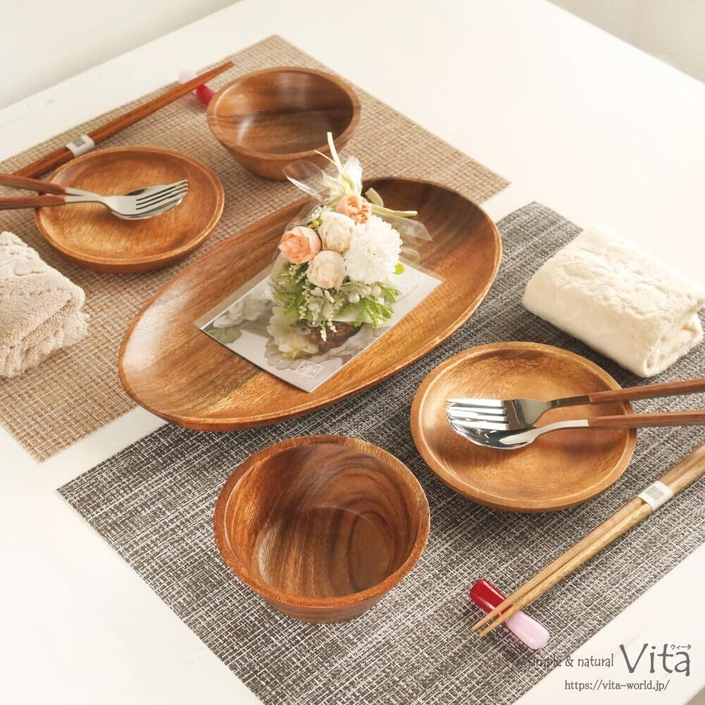 【ライフB(ラウンド)/ペア食器ギフト:計19点セット】 贈り物 結婚祝い ギフト プレゼント 新生活 アカシア食器 acacia 天然木 食器 木製 お皿 木の器 ウッドプレート ナチュラル 食卓 おしゃれ 木の皿 雑貨 インテリア(Brown, ラウンド) Vita(ウィータ) | ニコニコshops