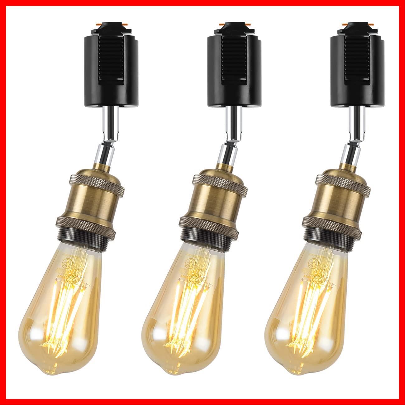 LVWIT ダクトレールライト E26口金 LED電球付き エジソン電球 60W形相当 電球色 ライティングレール 天井照明 角度調節可能 省エネ レトロ 3個セット