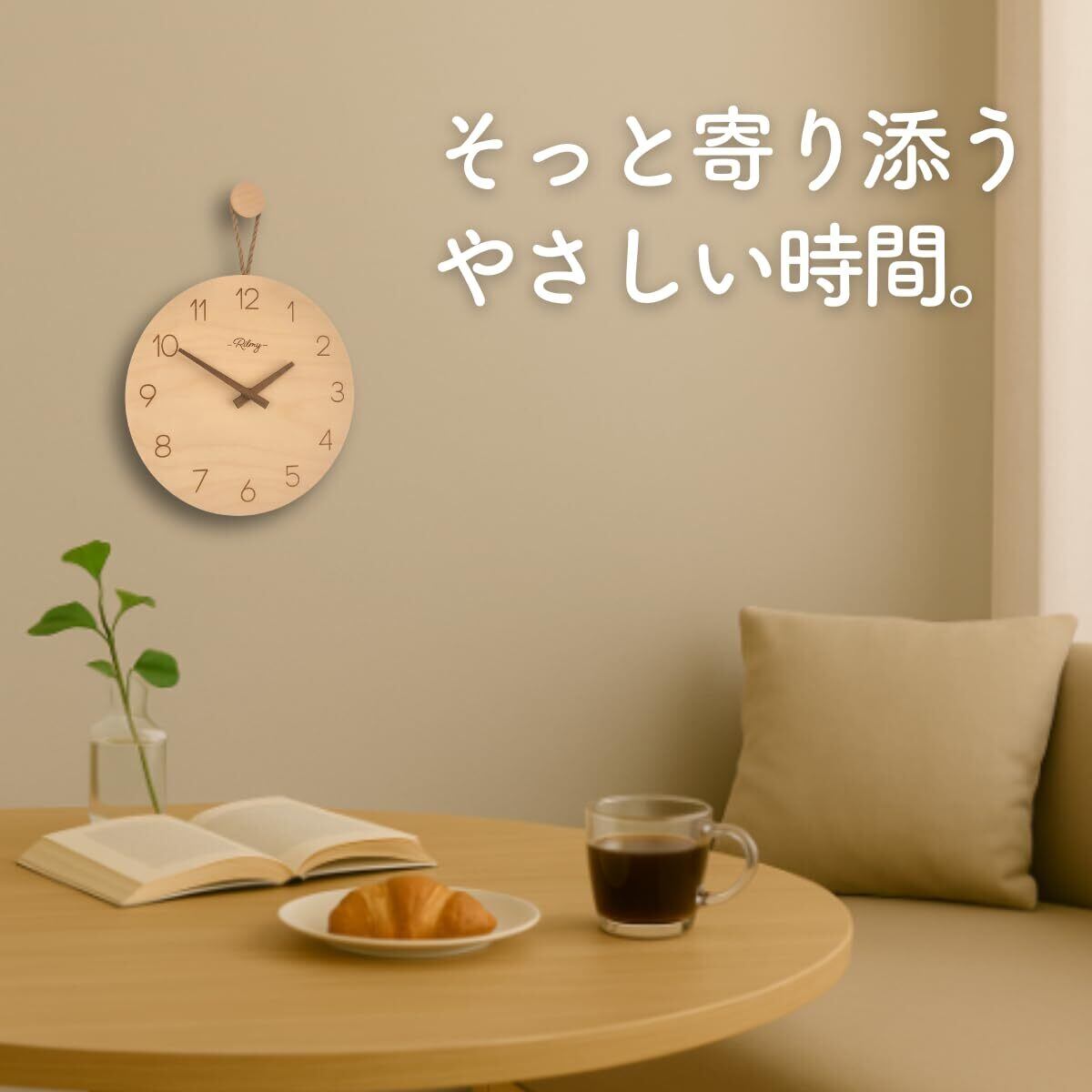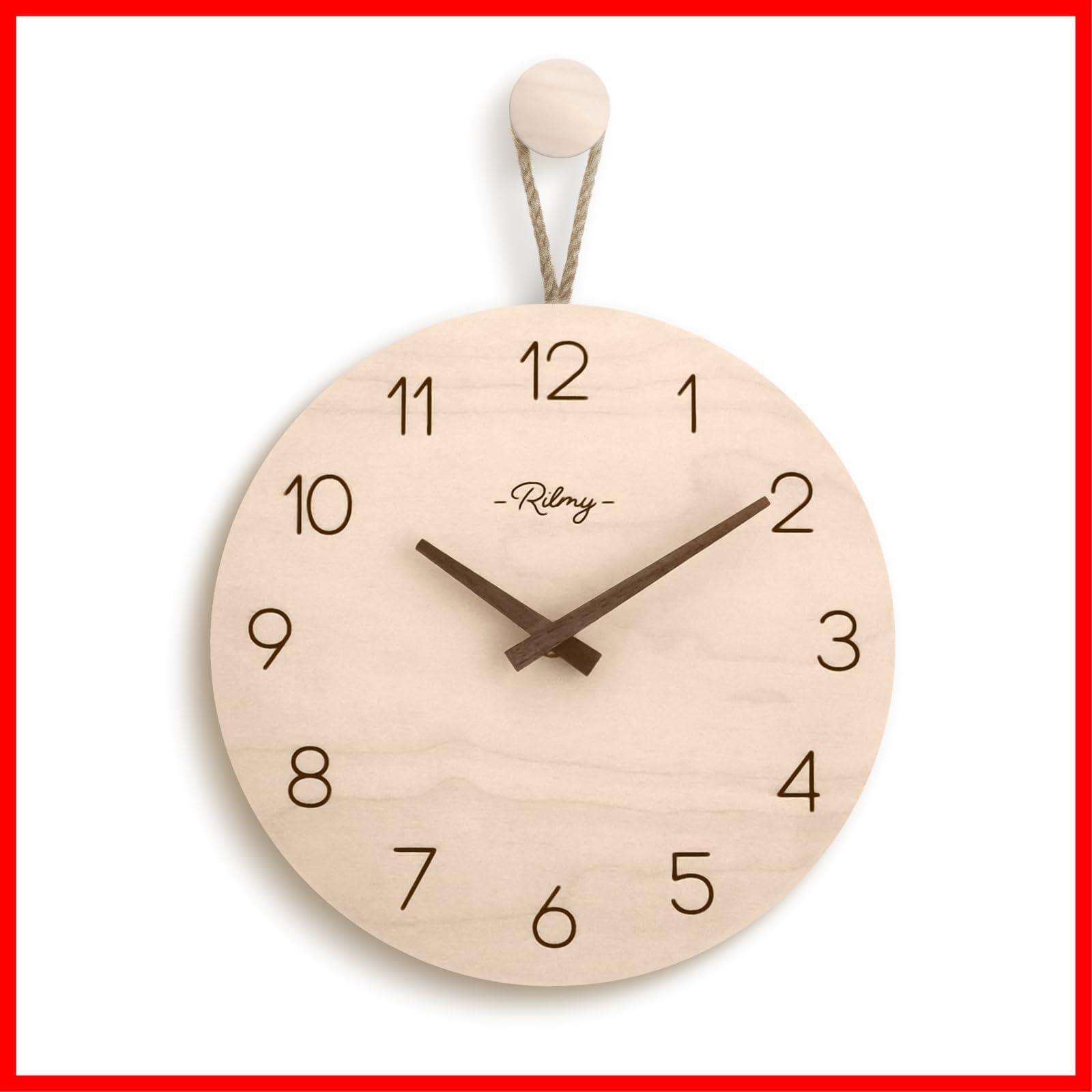 Rilmy 掛け時計 【テレビドラマに採用されました】時計 壁掛け 壁時計 おしゃれ 可愛い 北欧 静音 韓国インテリア ナチュラルインテリア 10インチ 25㎝ 乾電池付き 紐付き ペンダントクロック 無垢材 リルミー(ナンバースタイル)