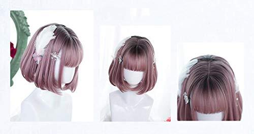 ショートボブ かつら フルウィッグ おしゃれ 可愛い ワンカールウィッグ 人気 小顔効果 フェミニンボブ レディース ファイバー自然 ウイッグ wig (ブラウン&ピンク)