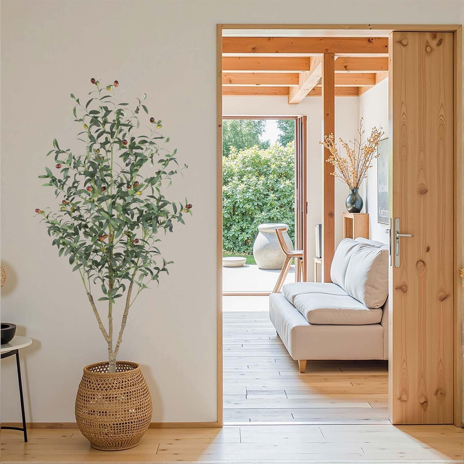 【丈夫で調整可能】当社のフェイクグリーンオリーブの木は丈夫な内部金属ワイヤーを備え、枝と葉は調整可能です。当社の人工観葉植物は、優れた柔軟性と破損に対する耐性を備えているため、お好みに合わせて枝を簡単に曲げたり調整したりできます。このフェイクグリーンは、剪定や整形をしなくても、何年もその高さ、色、形を維持し、美観を維持します。