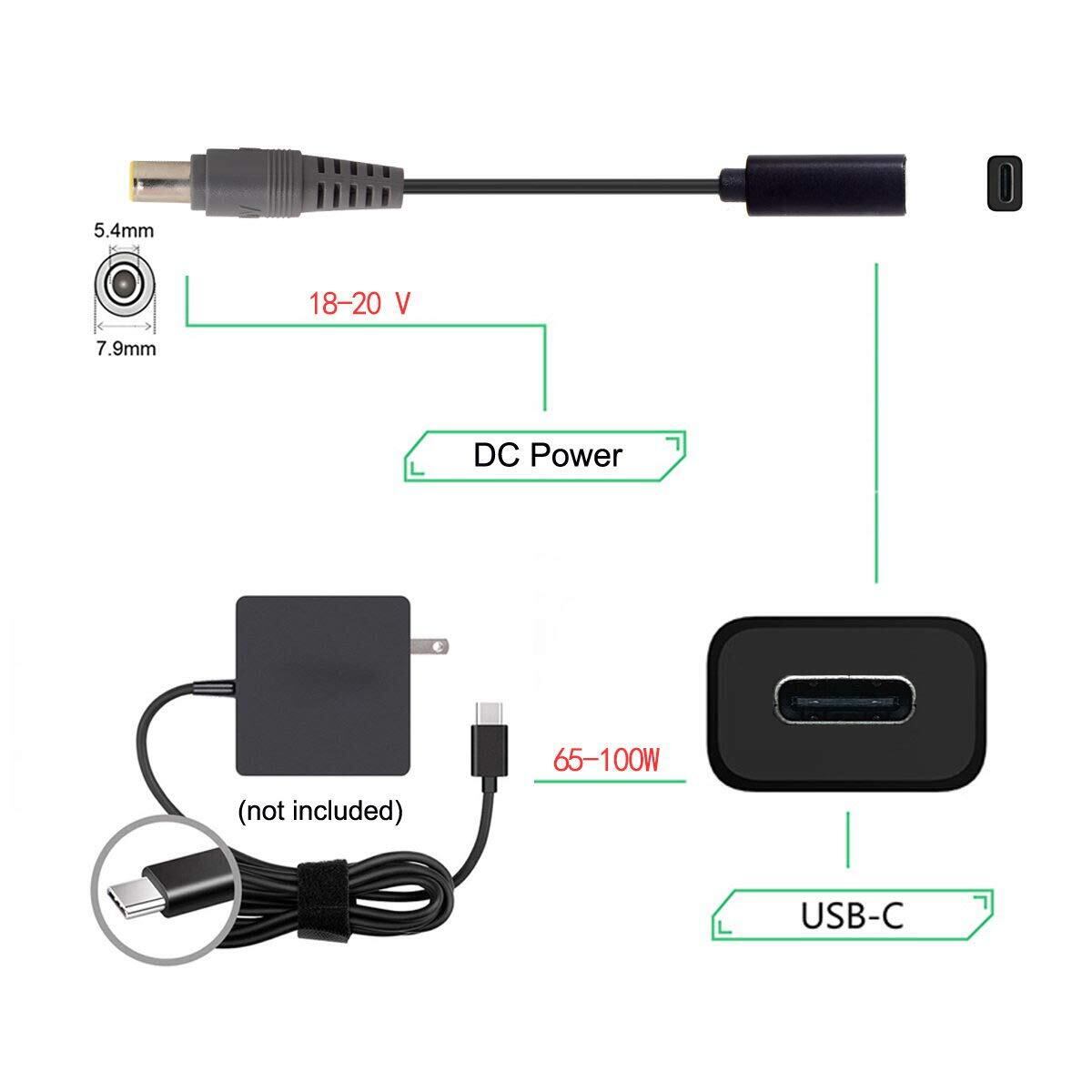 USB 3.1 Type C USB-C - DC / 長方形電源プラグ PDエミュレータートリガー 充電ケーブル HP ノートパソコン 18-20V / Lenovo ThinkPad X1 Carbon用