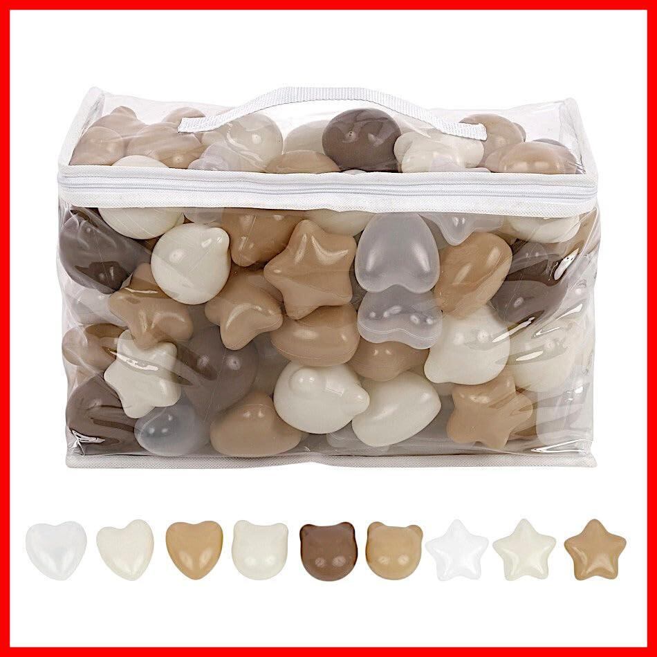 Hugmuu カラーボール 5.7cm 6cm プール用 くま形 収納バッグ付き 誕生日 プレゼント 星 ハート やわらかポリエチレン製 ベビー キッズ おしゃれ (100個, くま形) | ニコニコshops
