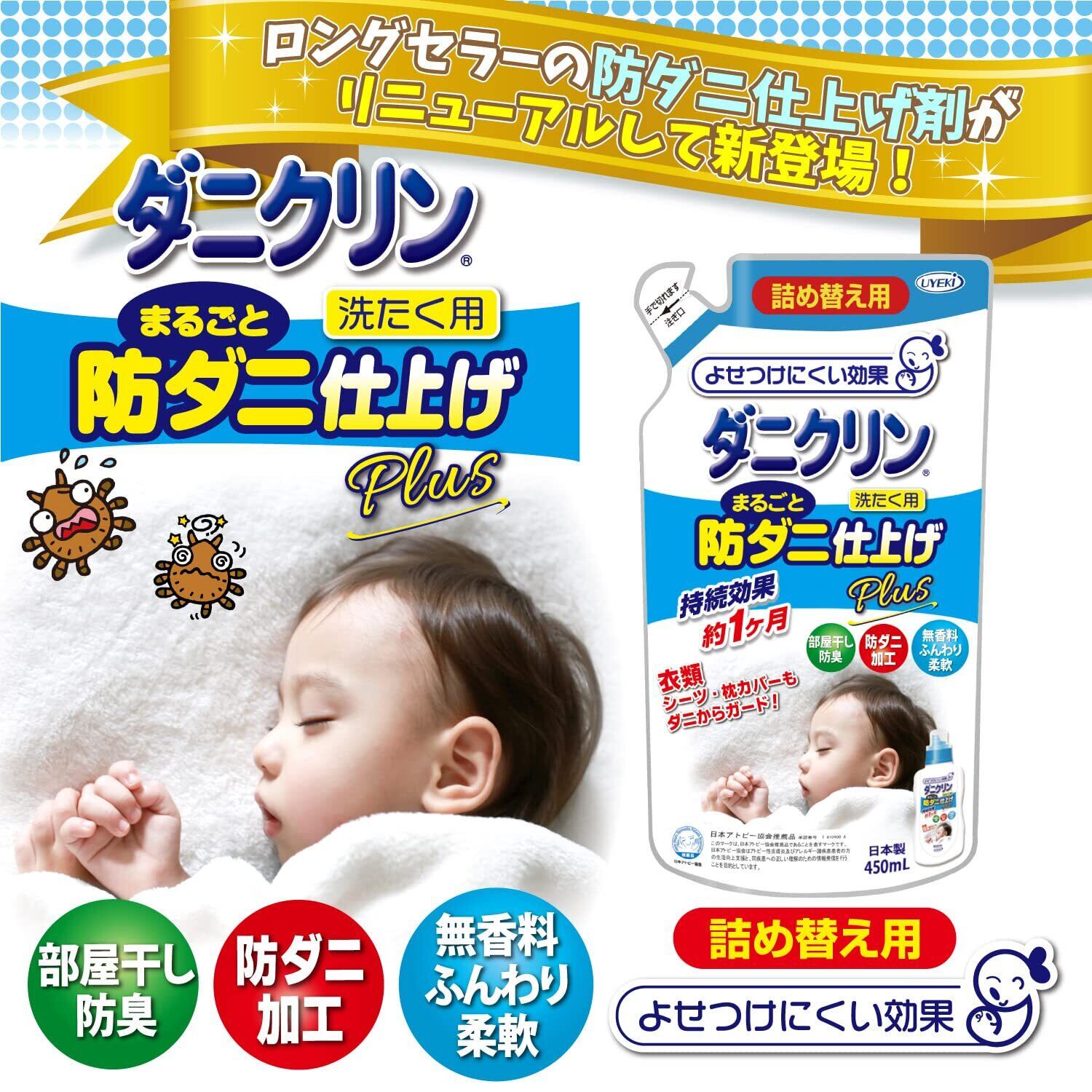 UYEKI(ウエキ) ダニクリン 洗たく用まるごと仕上げ剤Plus 柔軟剤 防ダニ効果 約1ヶ月 詰替 450mL【日本アトピー協会推薦品】