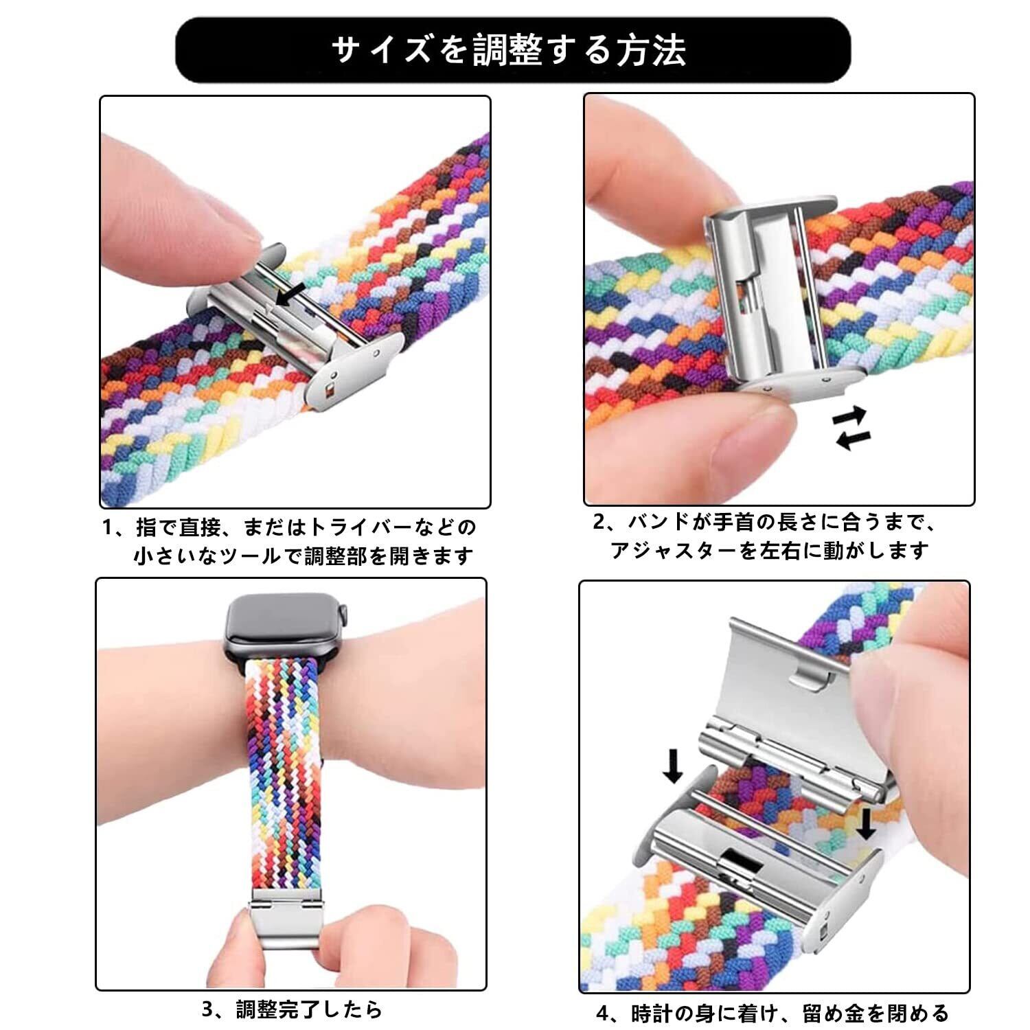 【長さ調整が便利】:編み込みの伸縮性と調節可能な時計バンドがアップグレードされました。スタイリッシュなステンレススチール製のループバックルデザインにより、ソロループストラップのサイズを自由に調節できます。伸縮性があり、着脱が簡単です。手首のサイズ「12-22cm」に適しています。