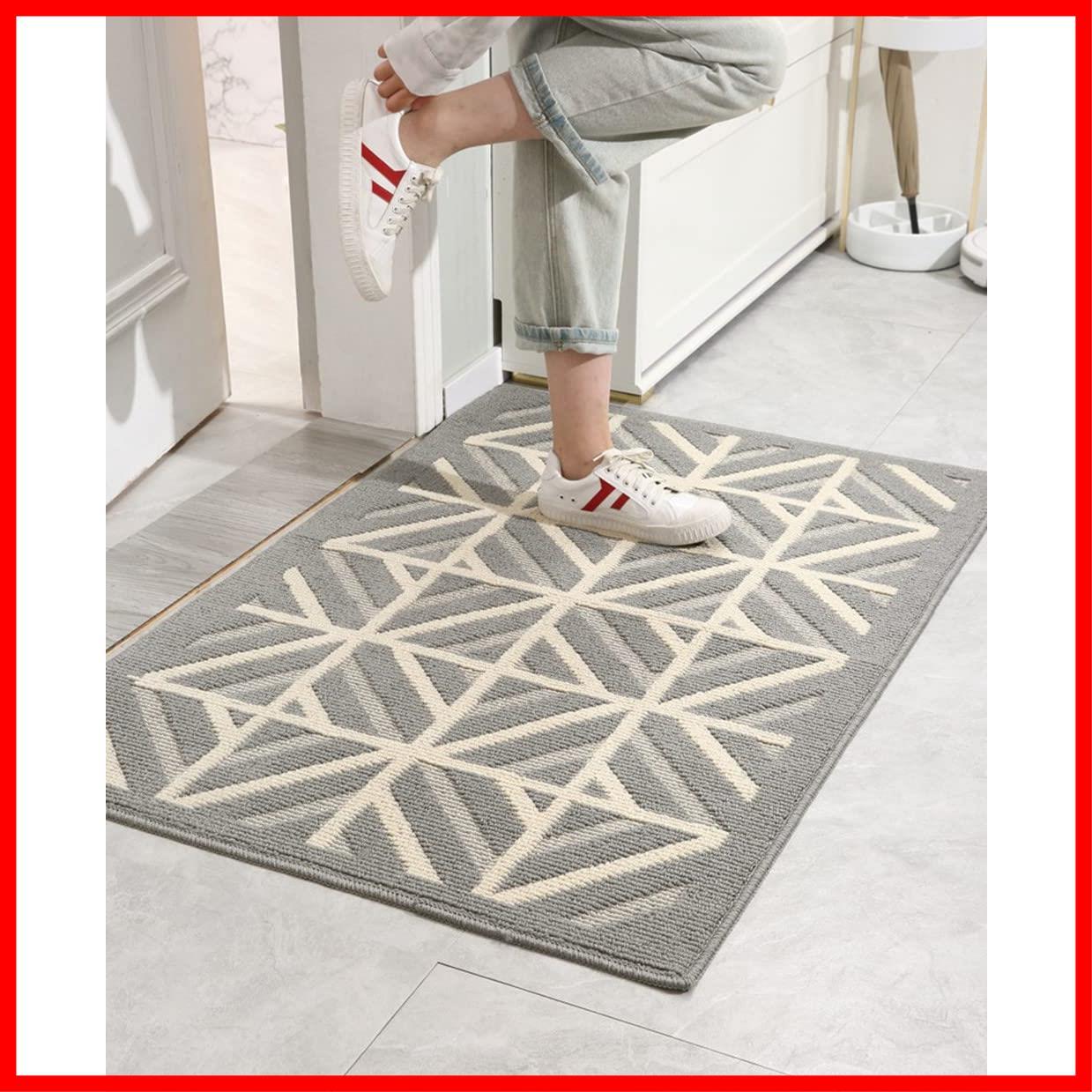 玄関マット ラグ カーペット ドアマット 室内 屋外マット おしゃれ シンプル 泥落としマット 泥除けドアマット 泥落とし 泥除け 砂落とし 洗える 滑り止め 防音 吸水 業務用 家庭用 店舗 オフィス 事務所 庭 60x90cm グレーxベ一ジュ | ニコニコshops