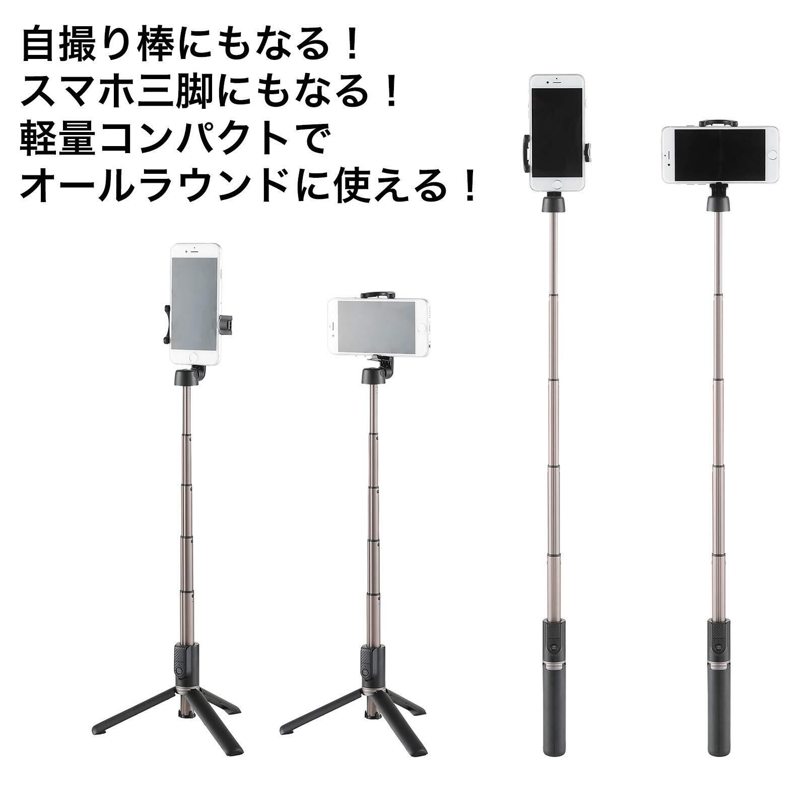 シャッターボタン付き自撮り棒が便利なスマホ三脚に大変身
