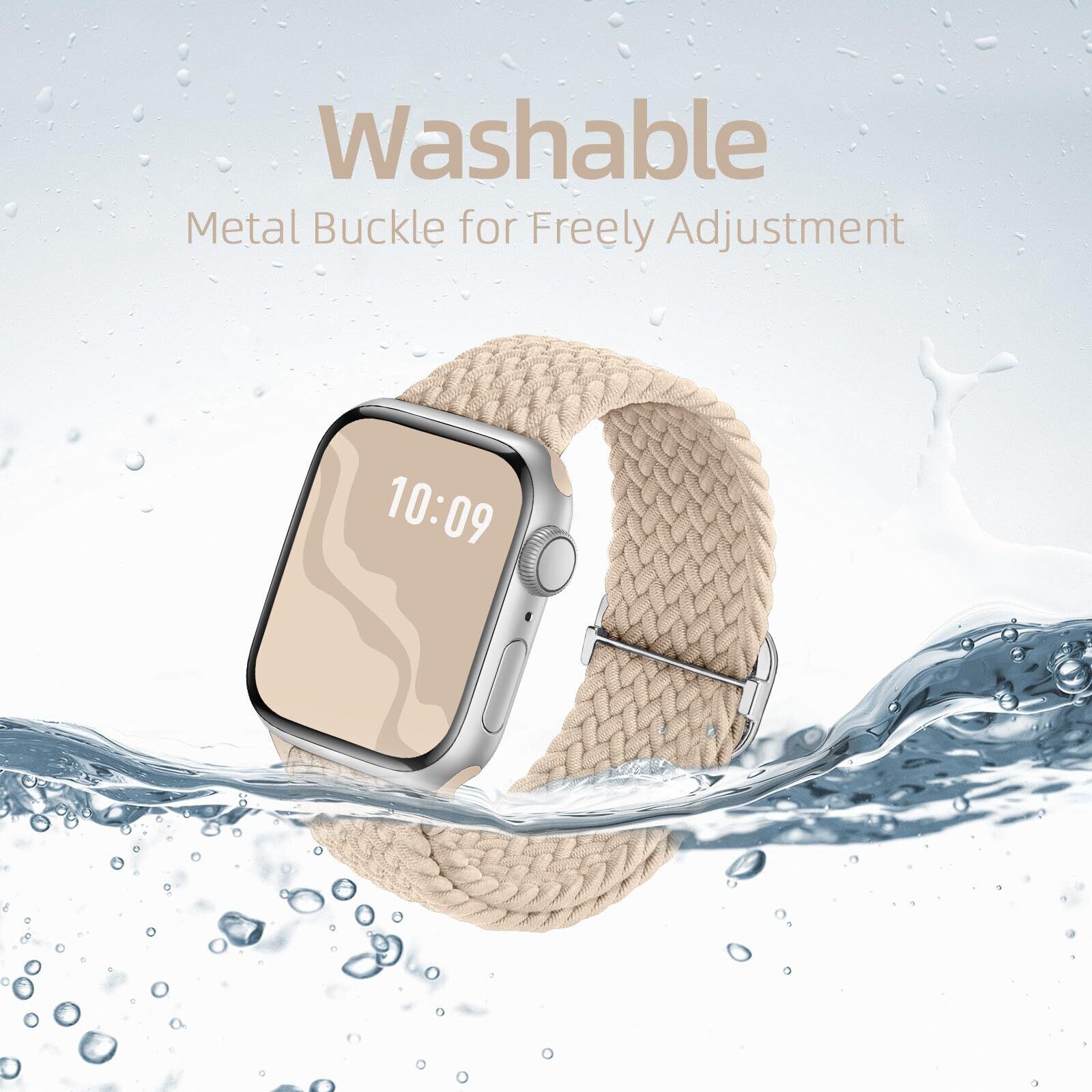 【ユニークな編み込みデザイン】アップルウォッチ 編み込みバンド。伸縮性のある高品質なナイロン糸素材で、高精度な編み込む技術でバンドを織って、特殊な加工で糸が抜けにくいし、何度の着脱も変形にくいです。