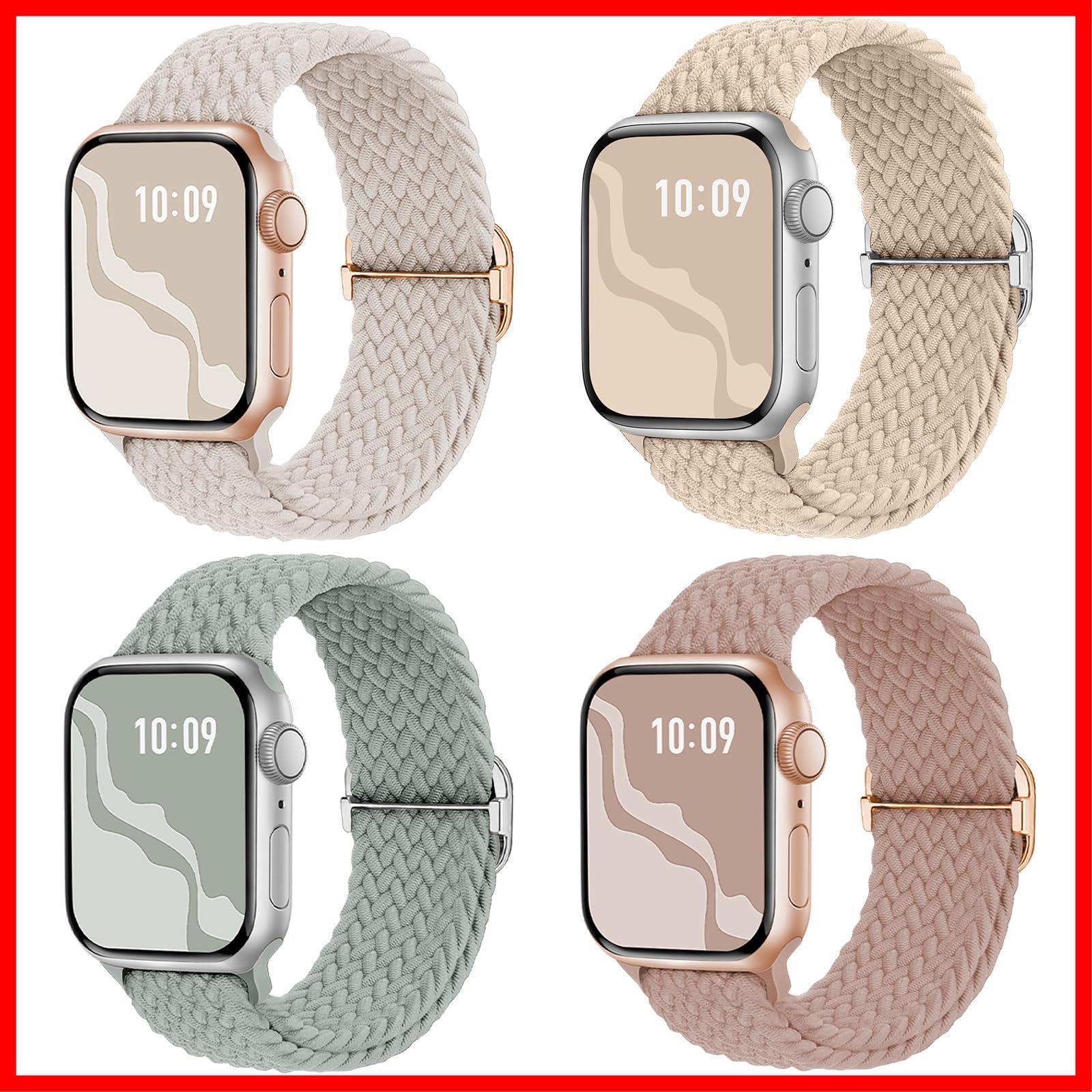 【4枚入り】Suitisbest コンパチブル アップルウォッチ バンド 編み込み 49mm 46mm 45mm 44mm 42mm 41mm 40mm 38mm Apple Watch ナイロンバンド 伸縮性 ゴム アップルウォッチ スポーツベルト Ultra 2 1 Series 10 9 8 7 6 5 4 3 2 1 SEに対応 長さ無段階調整 柔軟 通気 防汗 | ニコニコshops