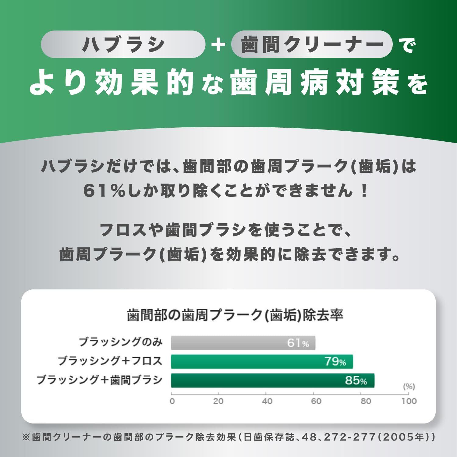 歯周病の原因となる歯間部に潜む歯周プラーク(歯垢)を、独自の抗菌三角毛+奥歯に届きやすいL字型で、効果的に除去