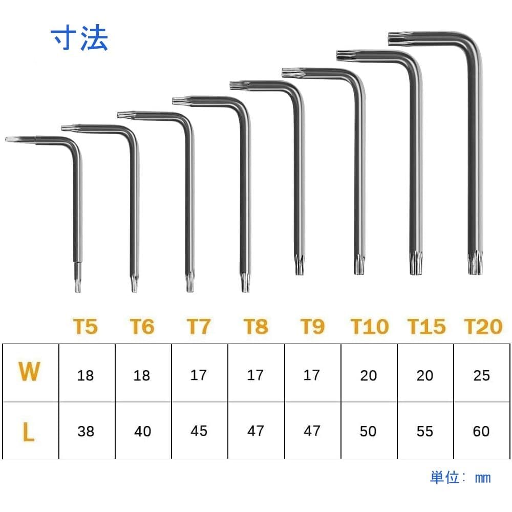 DeeAWai 精密トルクスドライバーセット8本組 T5 T6 T7 T8 T9 T10 T15 T20 L字型 クロムバナジウム鋼 改ざん防止ネジ対応 特殊星型ローブレンチ Mac Mini/Book HDD分解交換用 PS3/PS4/PS5修理ツールセット | ニコニコshops