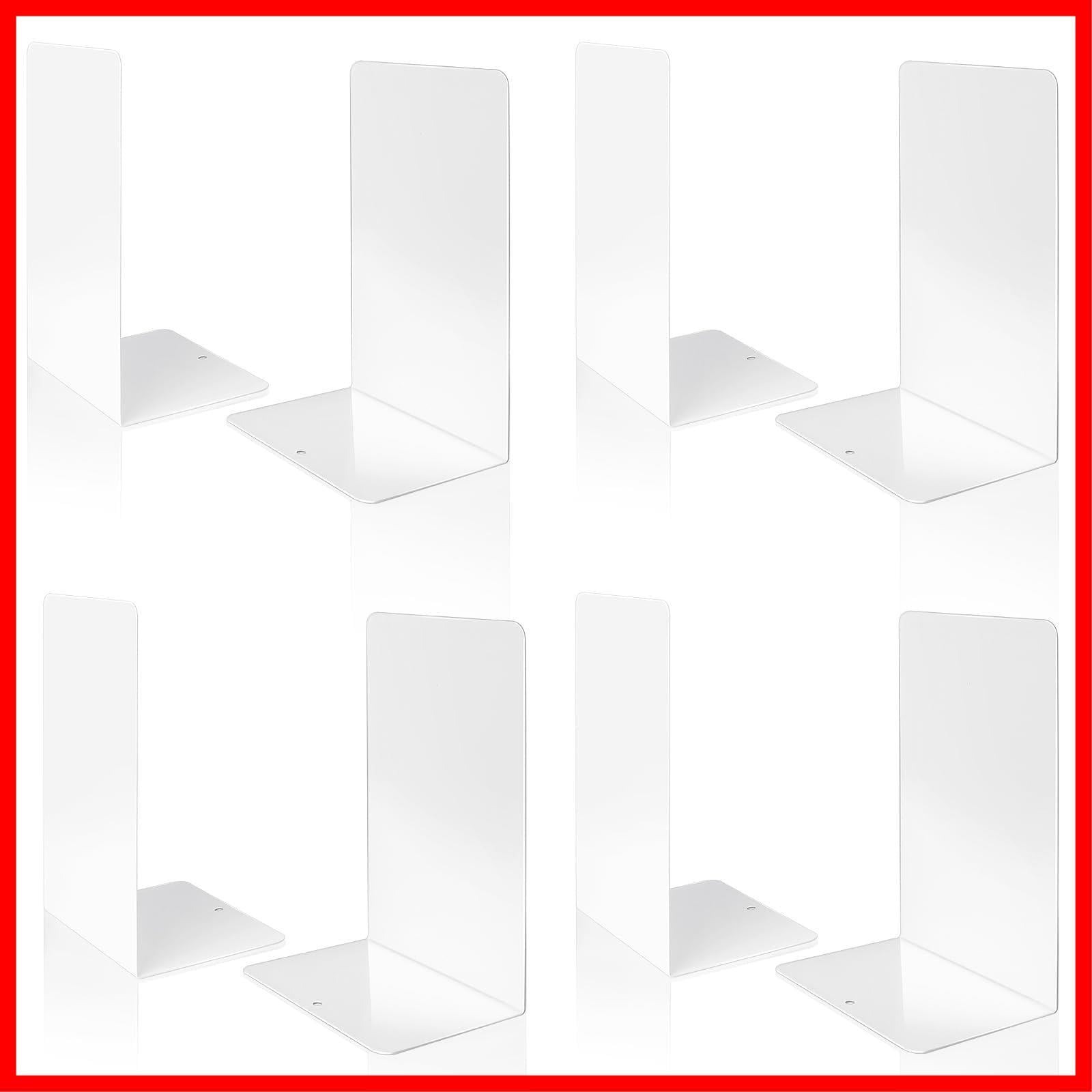 WEWINK PLUS 8 枚 本立て L型 ブックエンド 金属製 ホワイト 滑り止め付き倒れない卓上収納 4 セット 新聞 ファイルCD 辞書 雑誌 書類入れ 多機能のブックスタンド 固く変形しにくい 文房具 事務用品 整理整頓の仕切りスタンド
